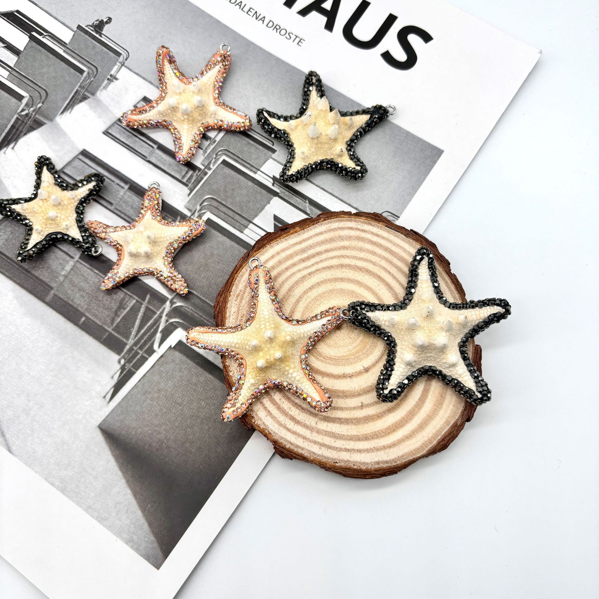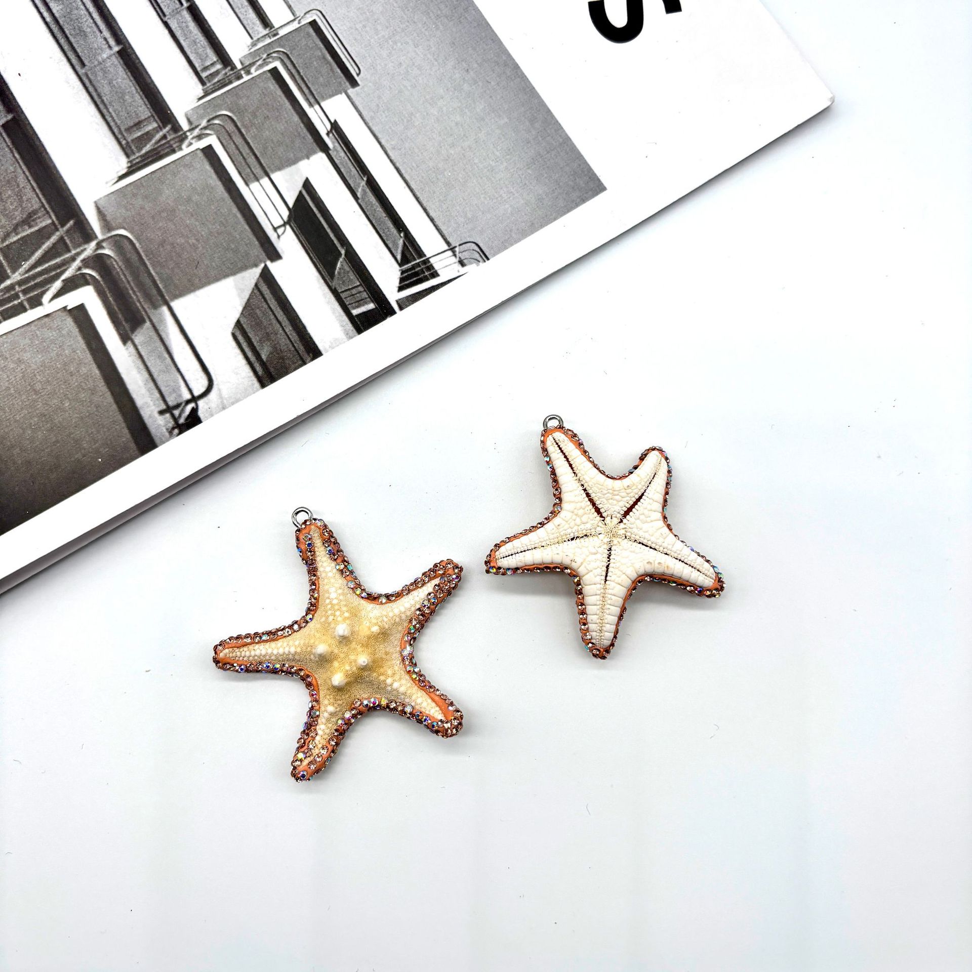 Μενταγιόν Shell, Κέλυφος, Αστερίας, χρώμα επίχρυσο, DIY & με στρας, περισσότερα χρώματα για την επιλογή, about:55-60mm, Sold Με PC