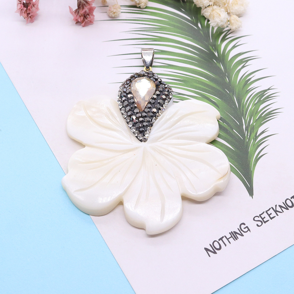 Μενταγιόν Shell, Γλυκού νερού Shell, Λουλούδι, χρώμα επάργυρα, DIY & με στρας, 51x58mm, Sold Με PC