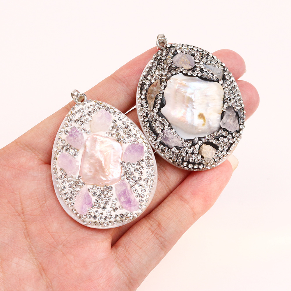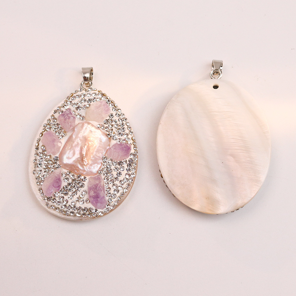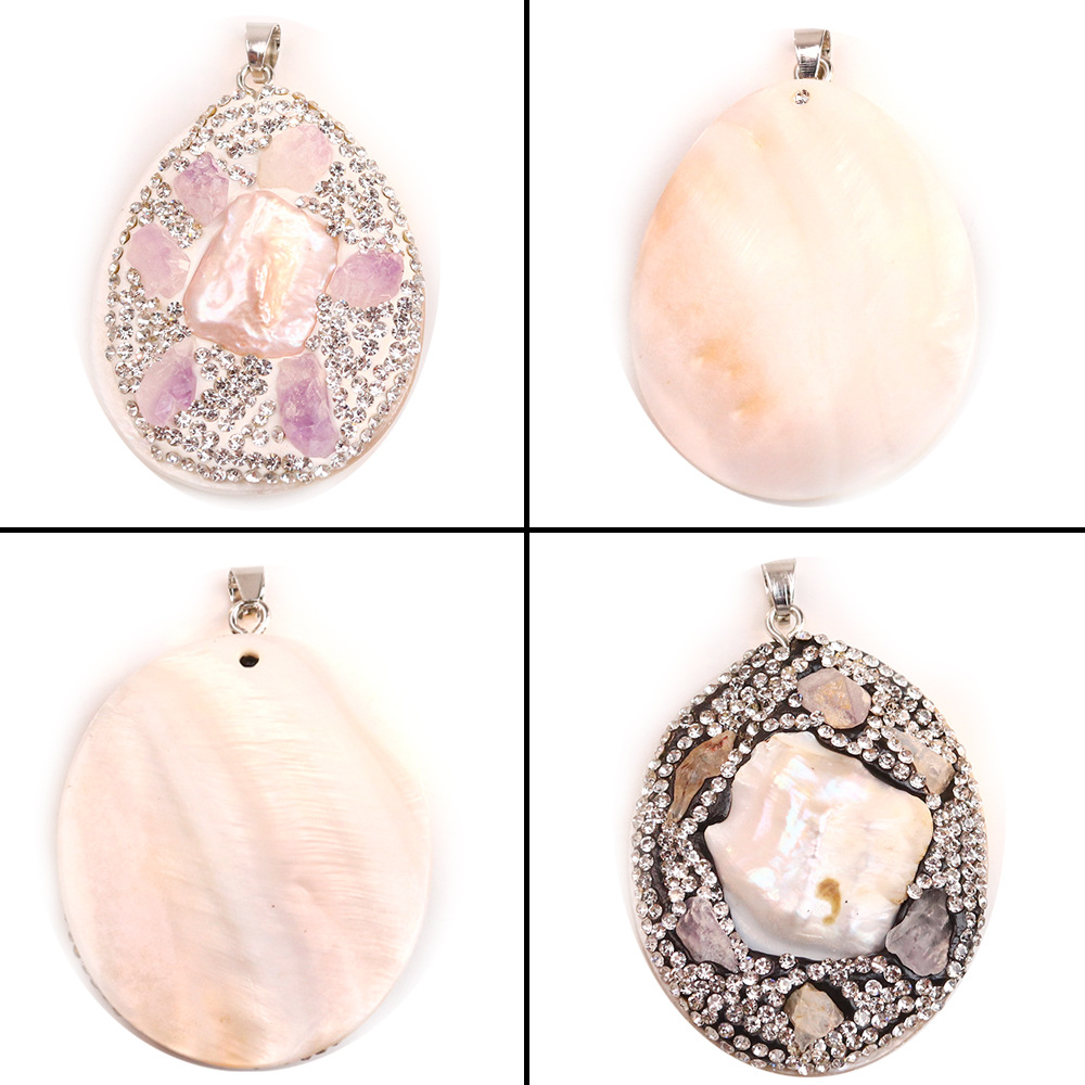 Μενταγιόν Shell, Κέλυφος, με Αμέθυστος, DIY & με στρας, περισσότερα χρώματα για την επιλογή, 40x55mm, Sold Με PC