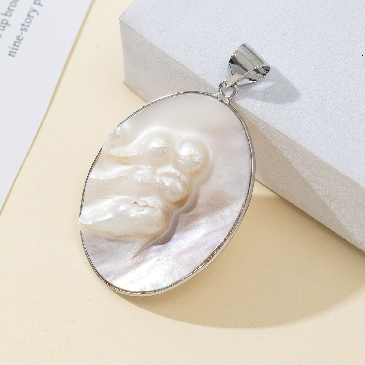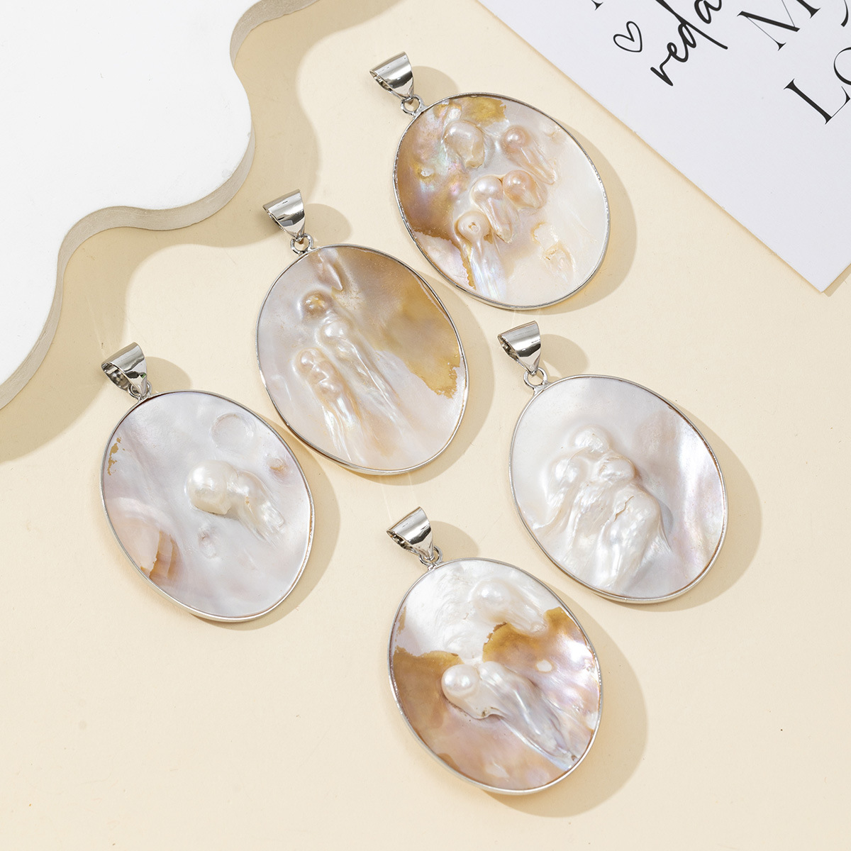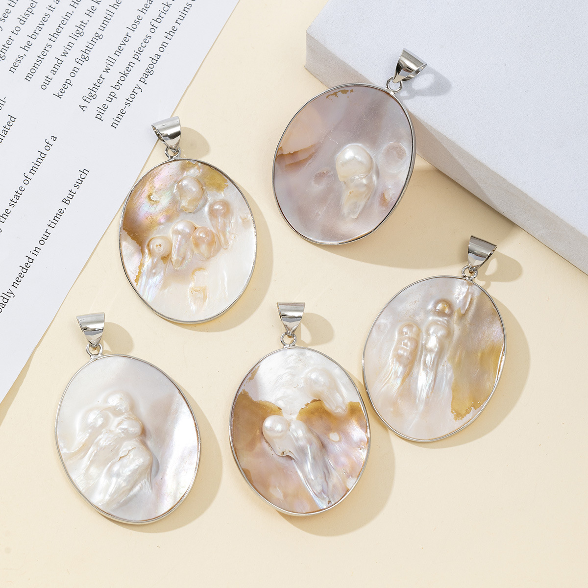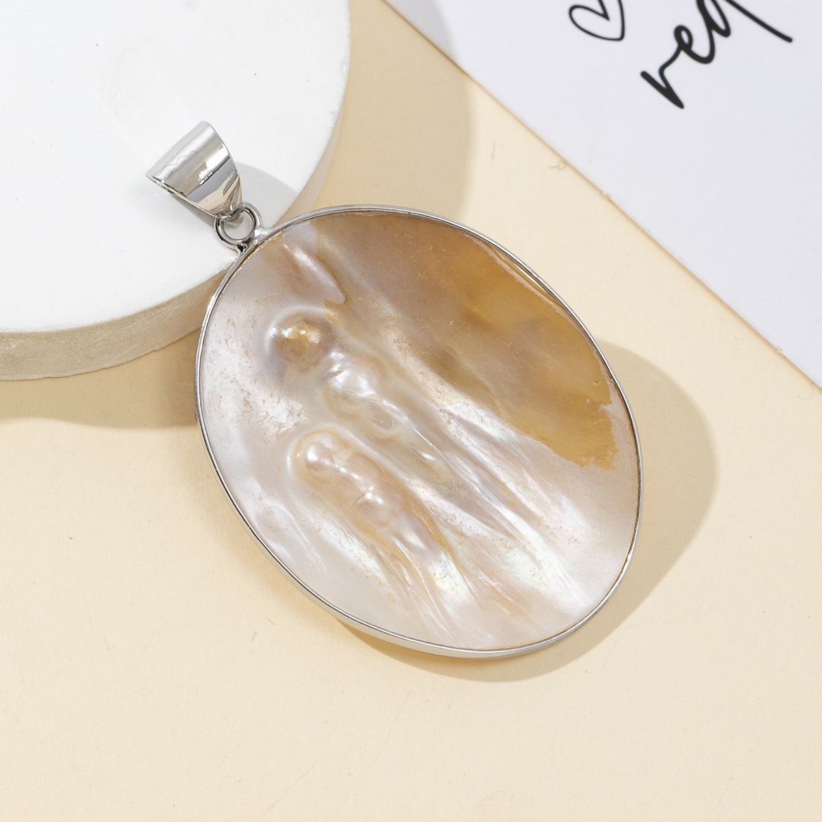 Μενταγιόν Shell, Κέλυφος, με Μαργαριτάρι του γλυκού νερού, DIY, 36x45mm, Sold Με PC
