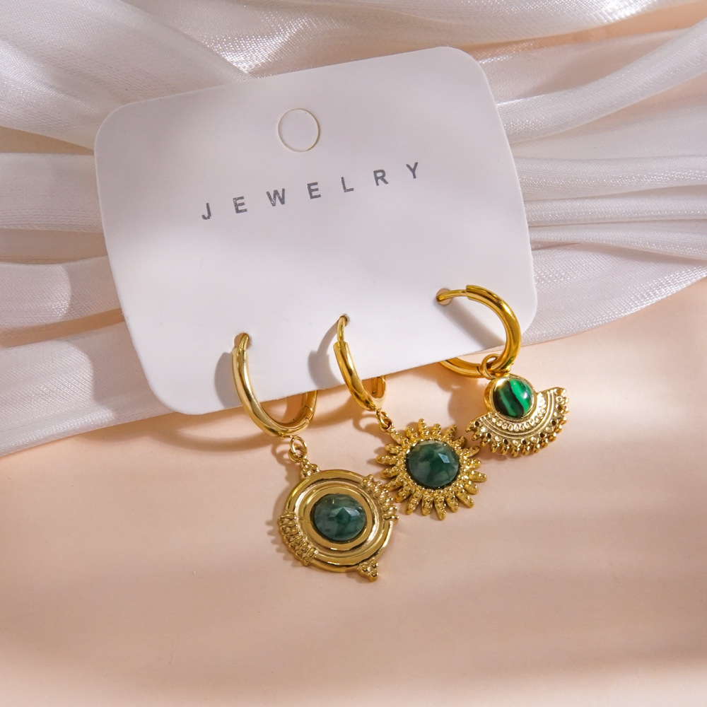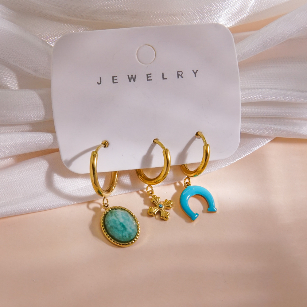 304 από ανοξείδωτο χάλυβα Σύνολο σκουλαρίκι, με Φυσική πέτρα & Κέλυφος, χρώμα επίχρυσο, διαφορετικά στυλ για την επιλογή & μικρο ανοίξει κυβικά ζιρκονία & για τη γυναίκα & σμάλτο, earring length 30-60mm, Sold Με Ορισμός