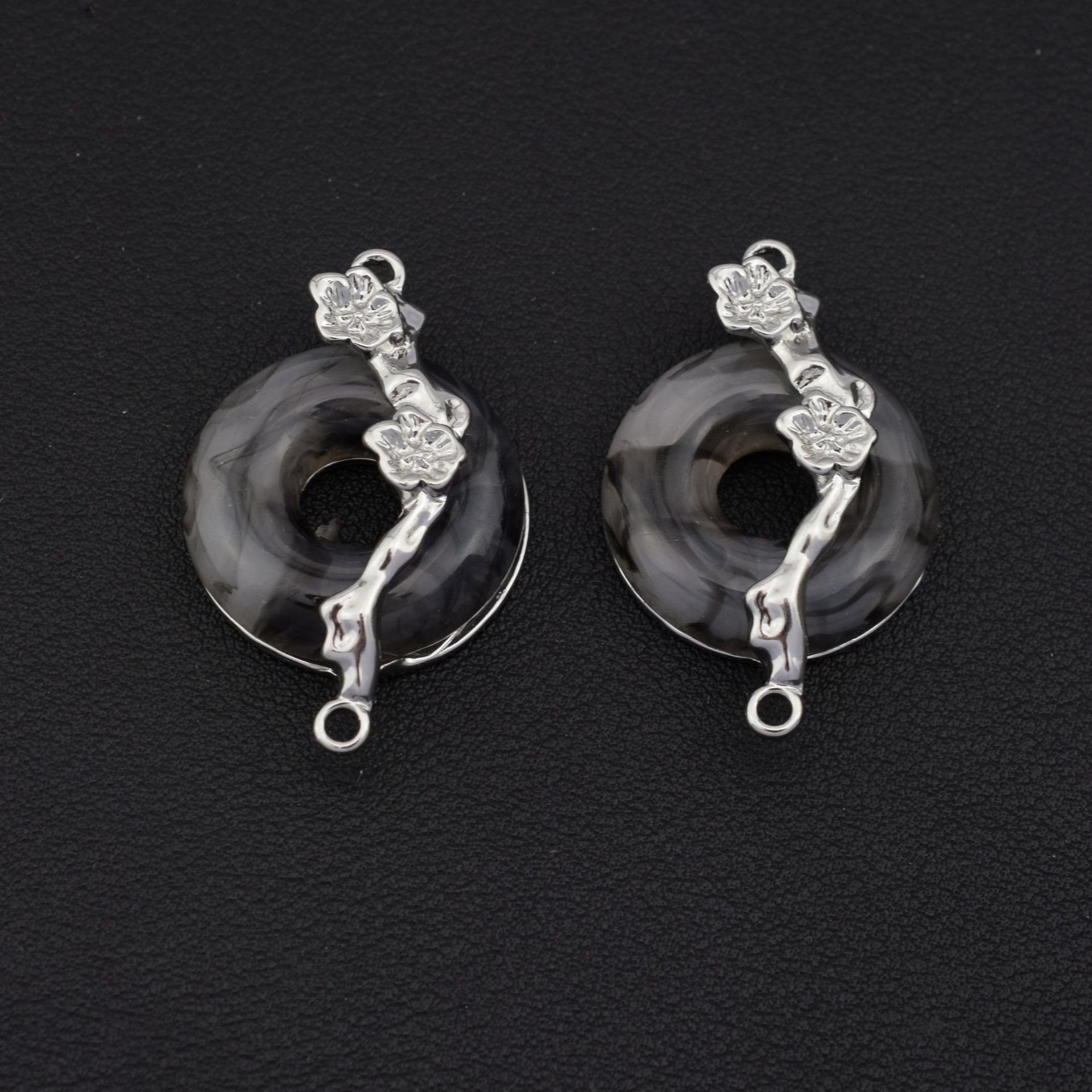 Κράμα ψευδάργυρου Connector, με Πολύτιμος λίθος, χρώμα επάργυρα, DIY, ασήμι, Sold Με PC