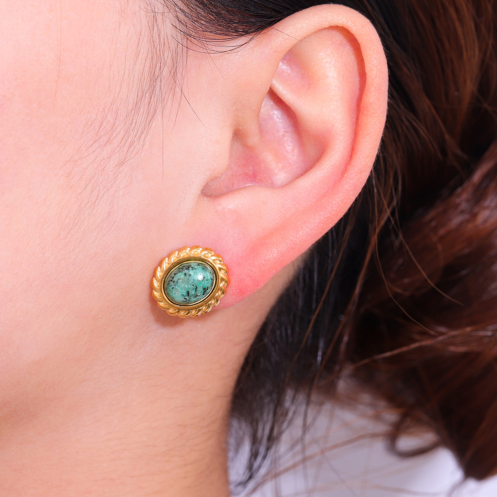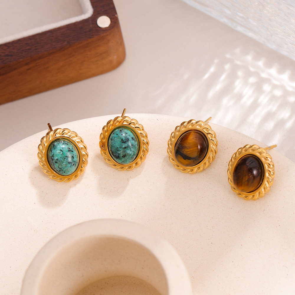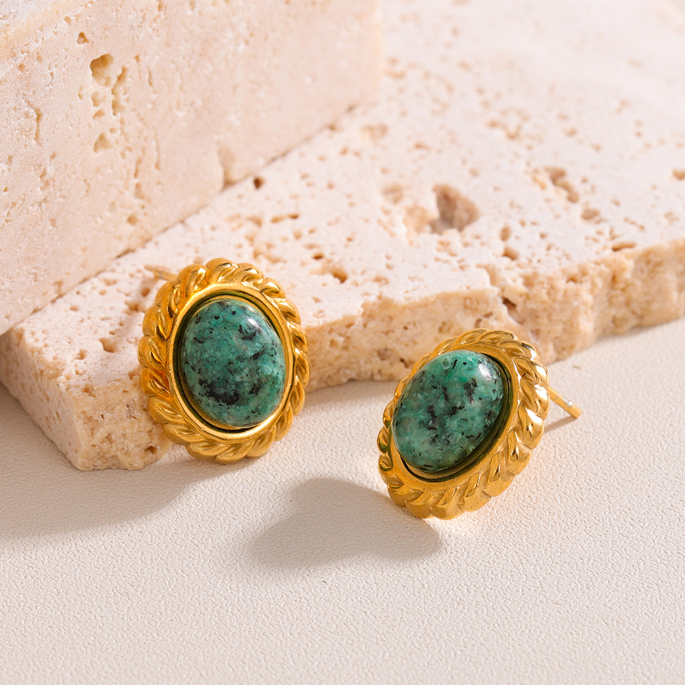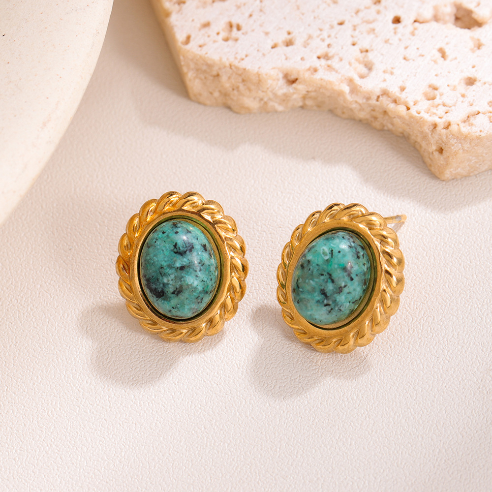 Pendientes de Acero Inoxidable, acero inoxidable 304, con Piedra natural, 18K chapado en oro, Joyería & diferentes materiales para la opción & para mujer, Vendido por Par
