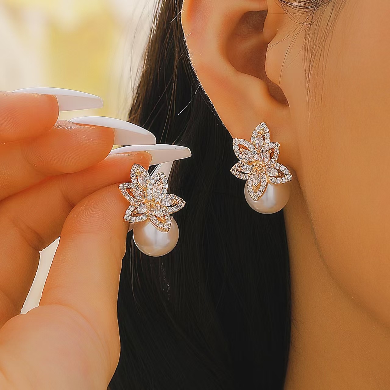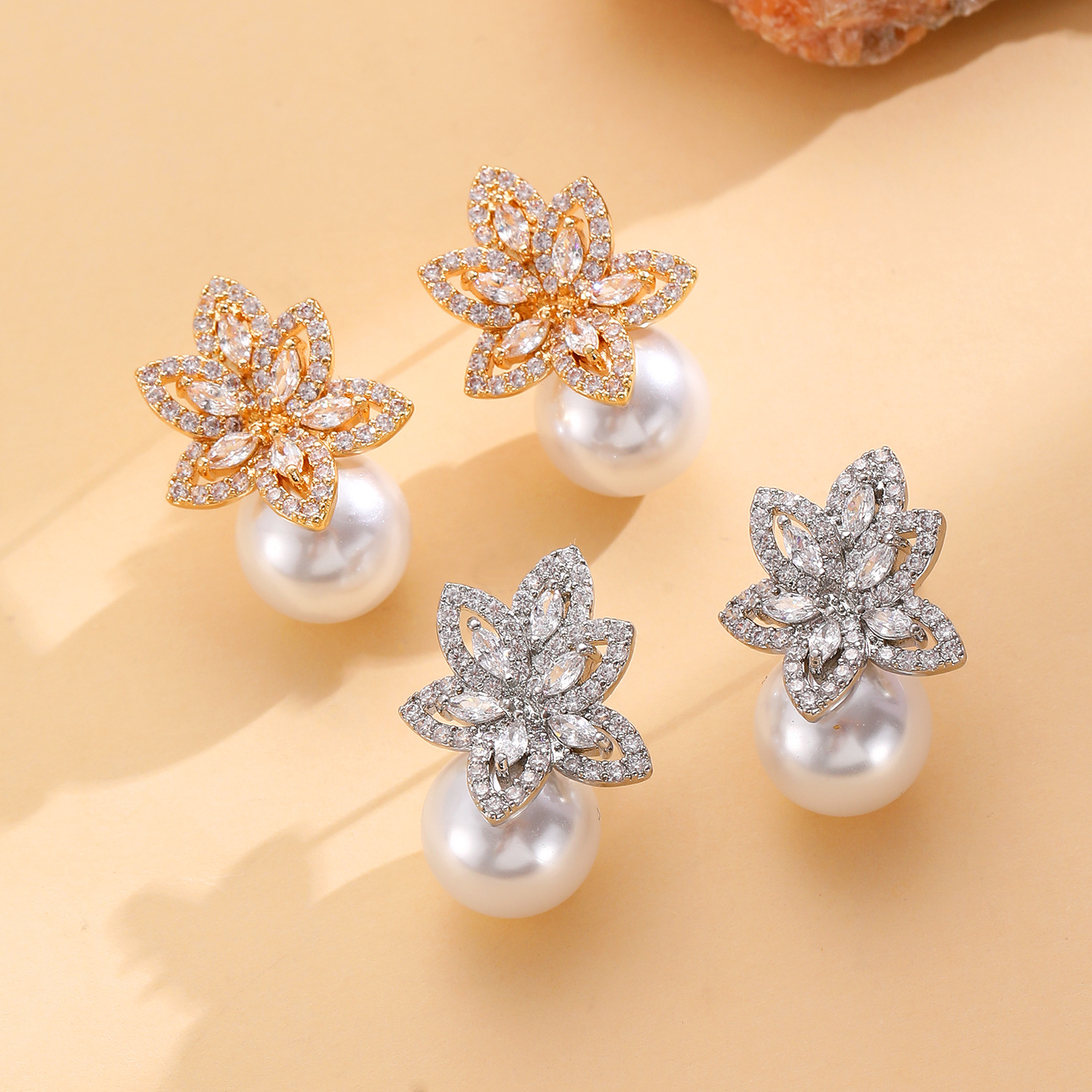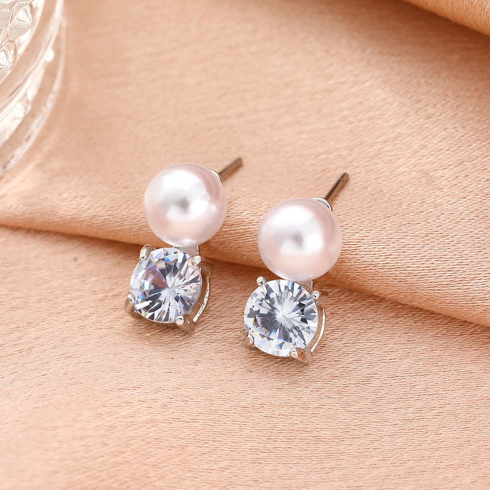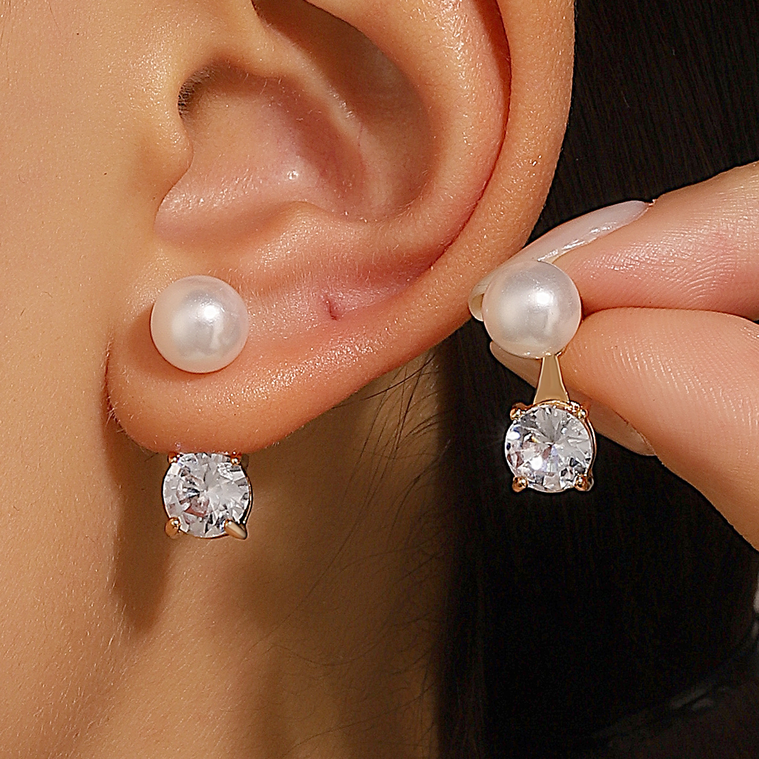 Circón cúbico ( CZ ) Pendiente tipo dormilona, aleación de zinc, con Perlas de plástico ABS, chapado en color dorado, Joyería & micro arcilla de zirconia cúbica, más colores para la opción, Vendido por Par