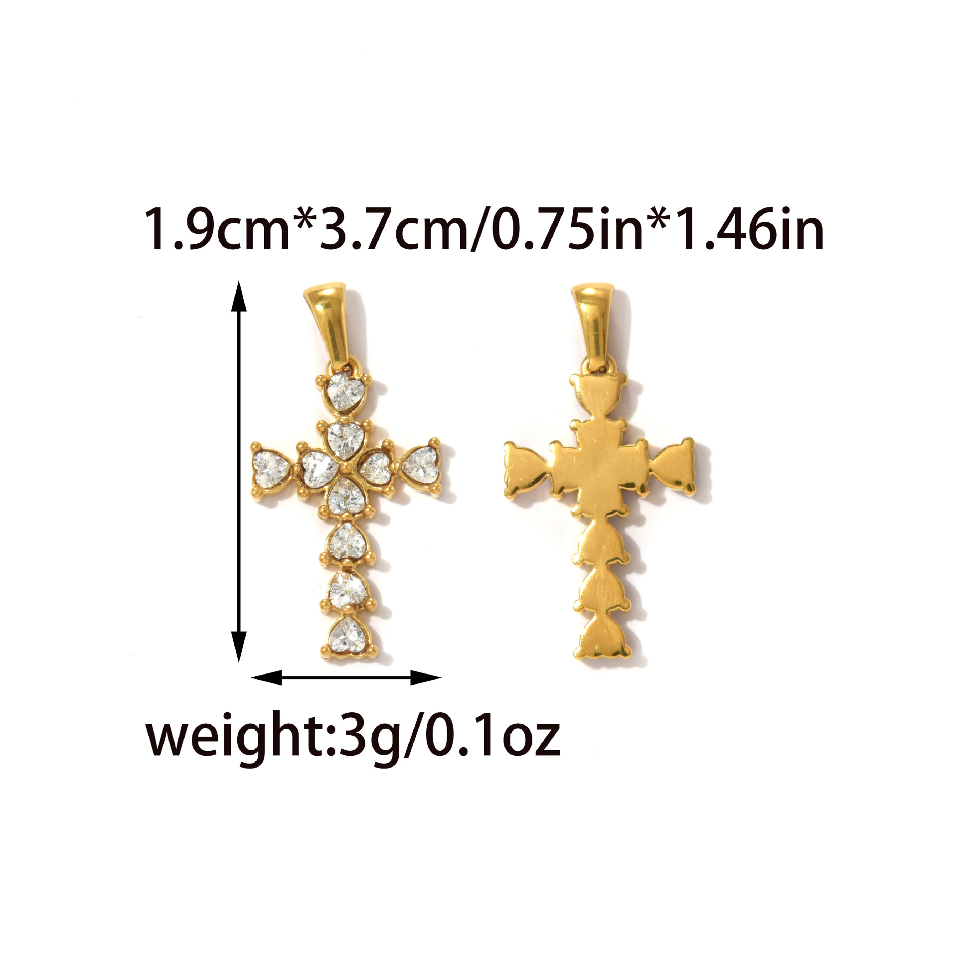 Colgantes Cruz de Acero Inoxidable, acero inoxidable 304, chapado en color dorado, Bricolaje & diferentes estilos para la opción & micro arcilla de zirconia cúbica, Vendido por UD