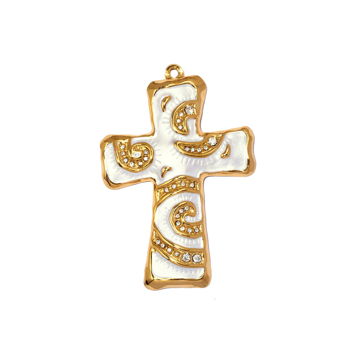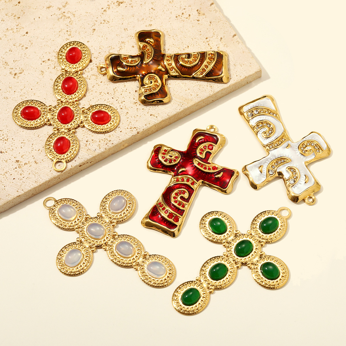 Colgantes Cruz de Acero Inoxidable, acero inoxidable 304, con Piedras preciosas, Cruces, chapado en color dorado, Bricolaje & diferentes estilos para la opción & esmalte & con diamantes de imitación, 3PCs/Bolsa, Vendido por Bolsa