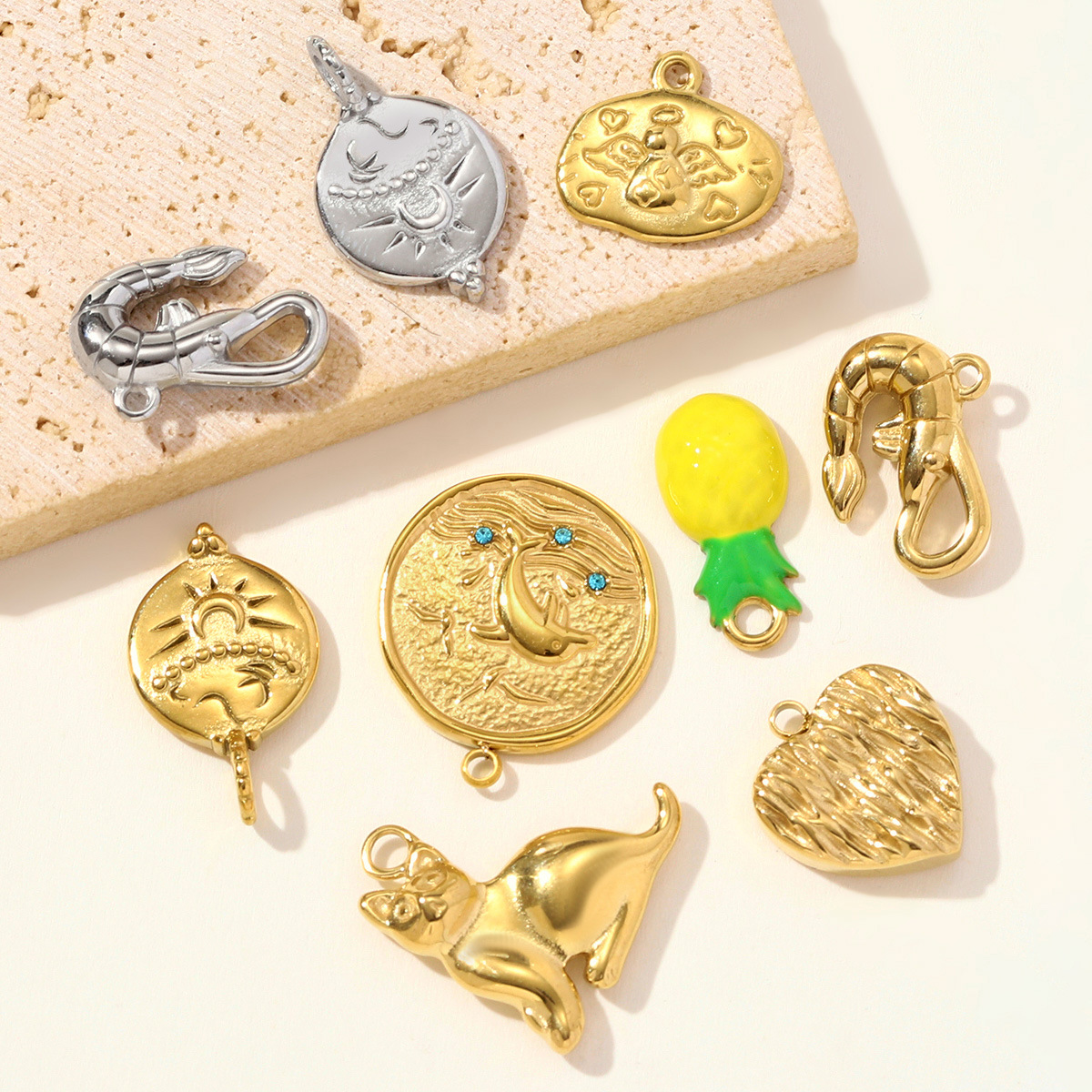 Colgantes de Acero Inoxidable, acero inoxidable 304, 18K chapado en oro, Bricolaje & diferentes estilos para la opción & con diamantes de imitación, Vendido por UD