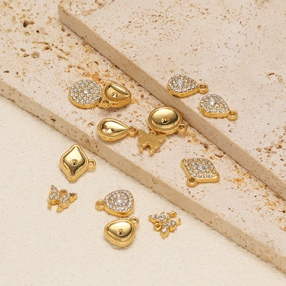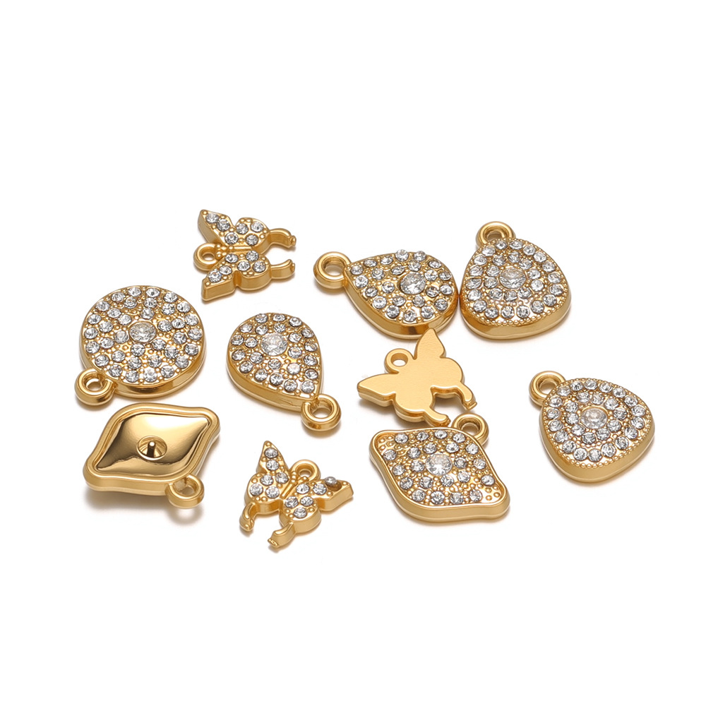 Colgantes de Acero Inoxidable, acero inoxidable 304, chapado en color dorado, Bricolaje & diferentes estilos para la opción & con diamantes de imitación, 10PCs/Bolsa, Vendido por Bolsa