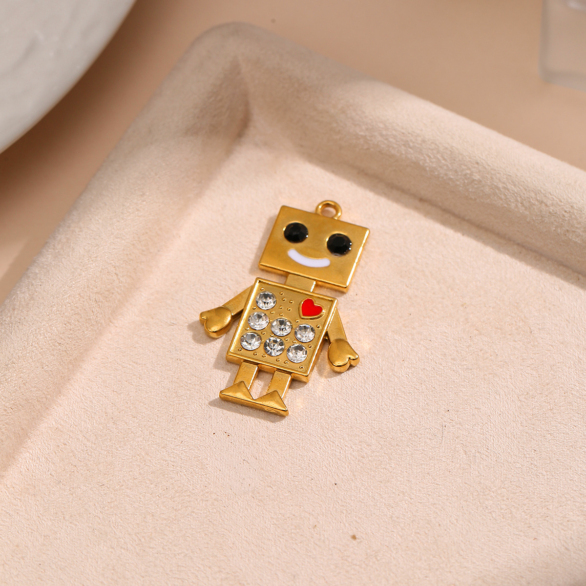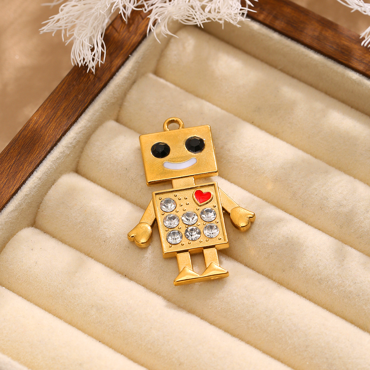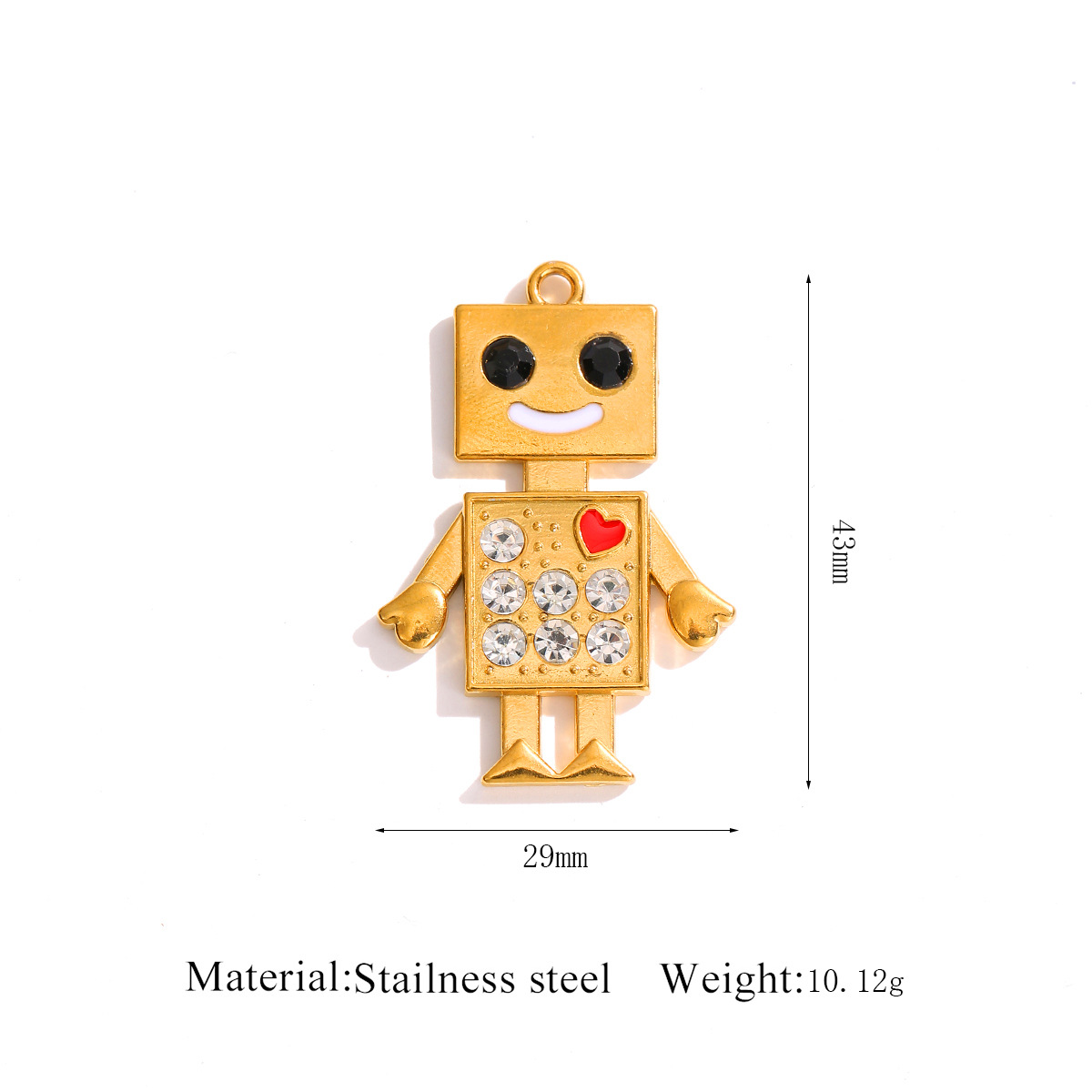 Colgantes de Acero Inoxidable, acero inoxidable 304, Robot, chapado en color dorado, Bricolaje & esmalte & con diamantes de imitación, 29x43mm, Vendido por UD