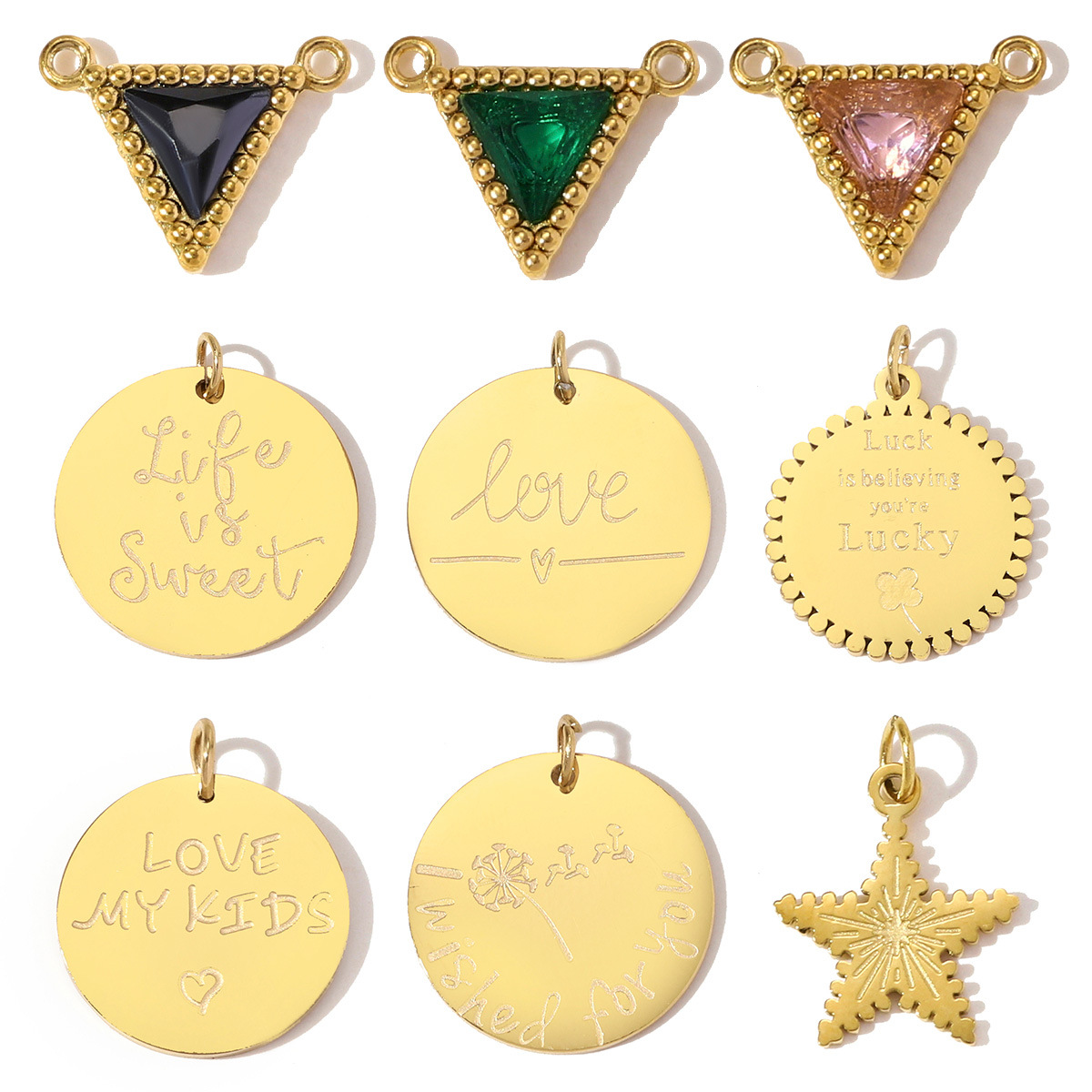 Colgantes de Acero Inoxidable, acero inoxidable 304, chapado en color dorado, Bricolaje & diferentes estilos para la opción & micro arcilla de zirconia cúbica, 3PCs/Bolsa, Vendido por Bolsa