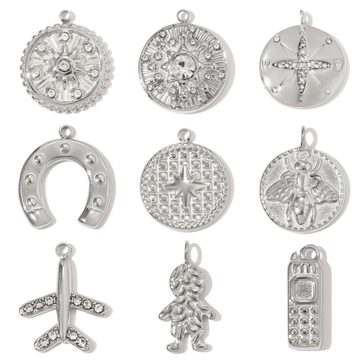 Colgantes de Acero Inoxidable, acero inoxidable 304, pulido, Bricolaje & diferentes estilos para la opción & con diamantes de imitación, color original, 3PCs/Bolsa, Vendido por Bolsa