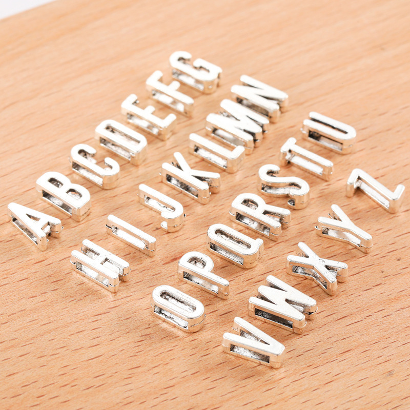 Colgantes de Aleación de Zinc en Forma Alfabeto, Carta del alfabeto, chapado, Letras son de la A la Z & Bricolaje, más colores para la opción, 4x10mm, 26PCs/Set, Vendido por Set