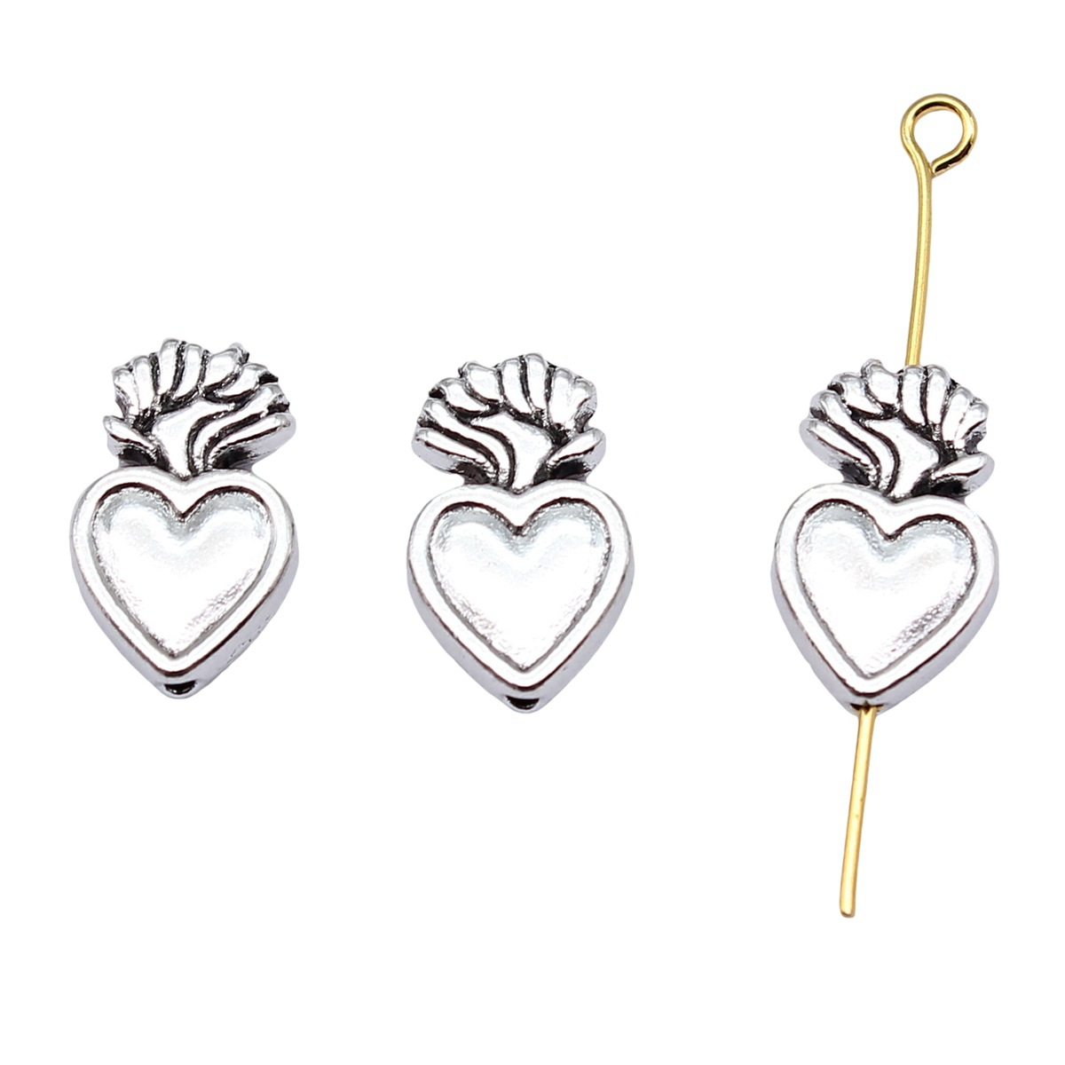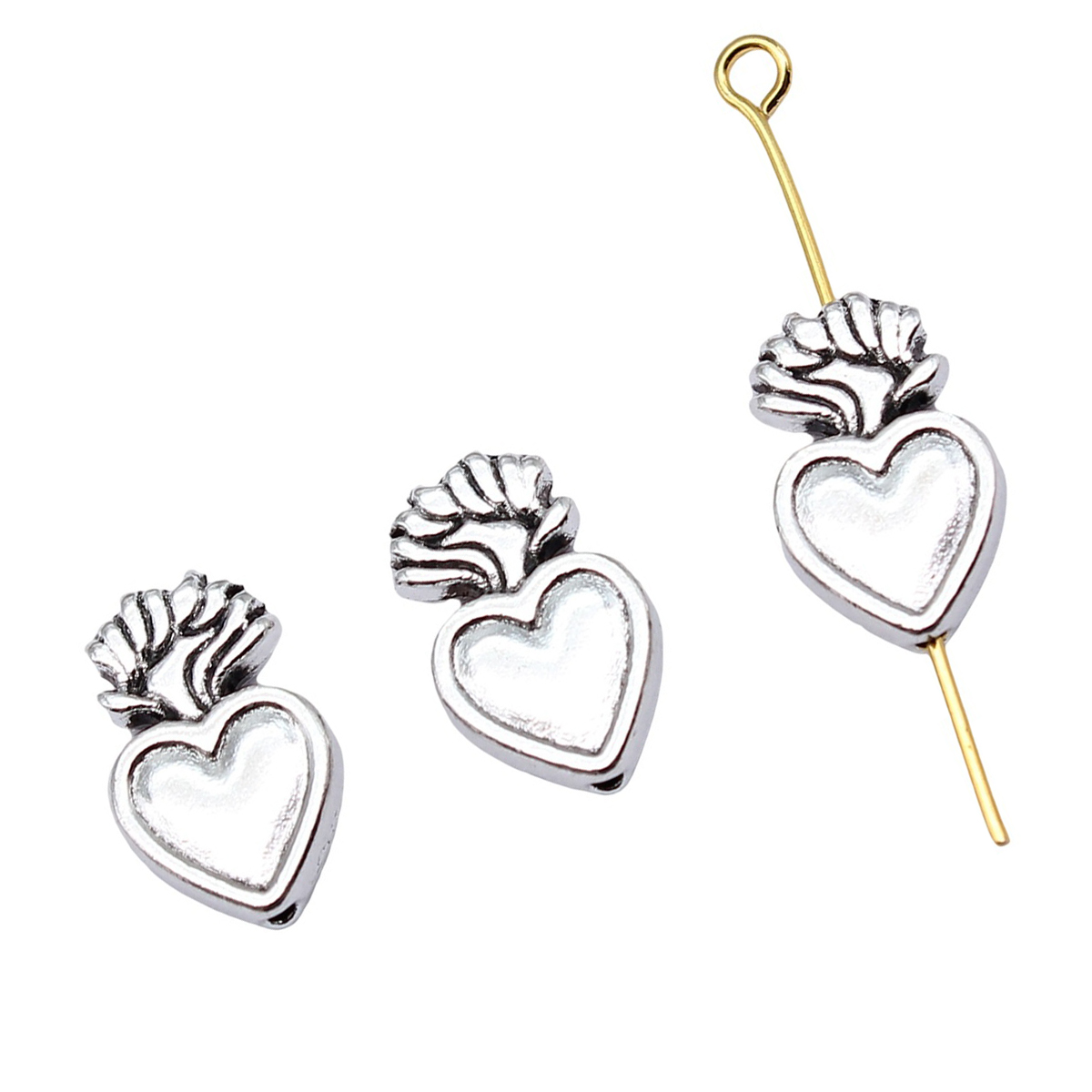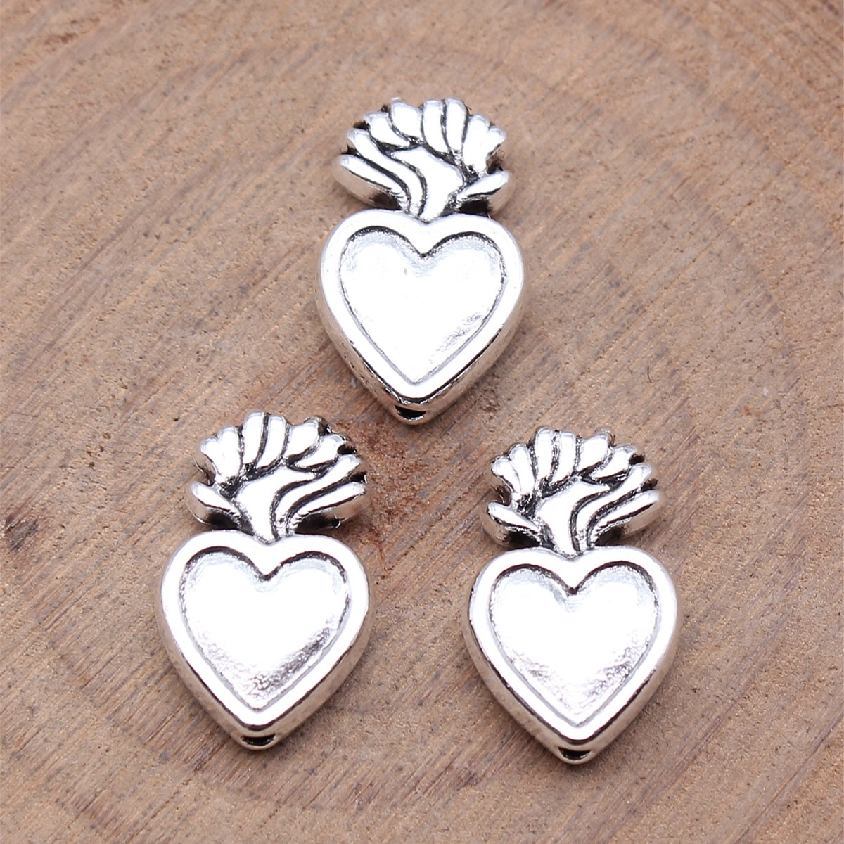 Colgantes de Aleación de Zinc en Forma de Corazón, chapado en color de plata antigua, Bricolaje, Vendido por UD