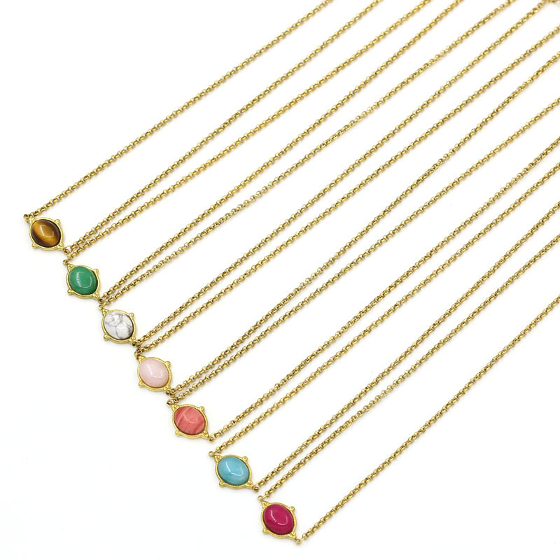 Collar de acero inoxidable de la joyería, acero inoxidable 304, con Piedra natural, chapado en color dorado, más colores para la opción, Vendido por UD