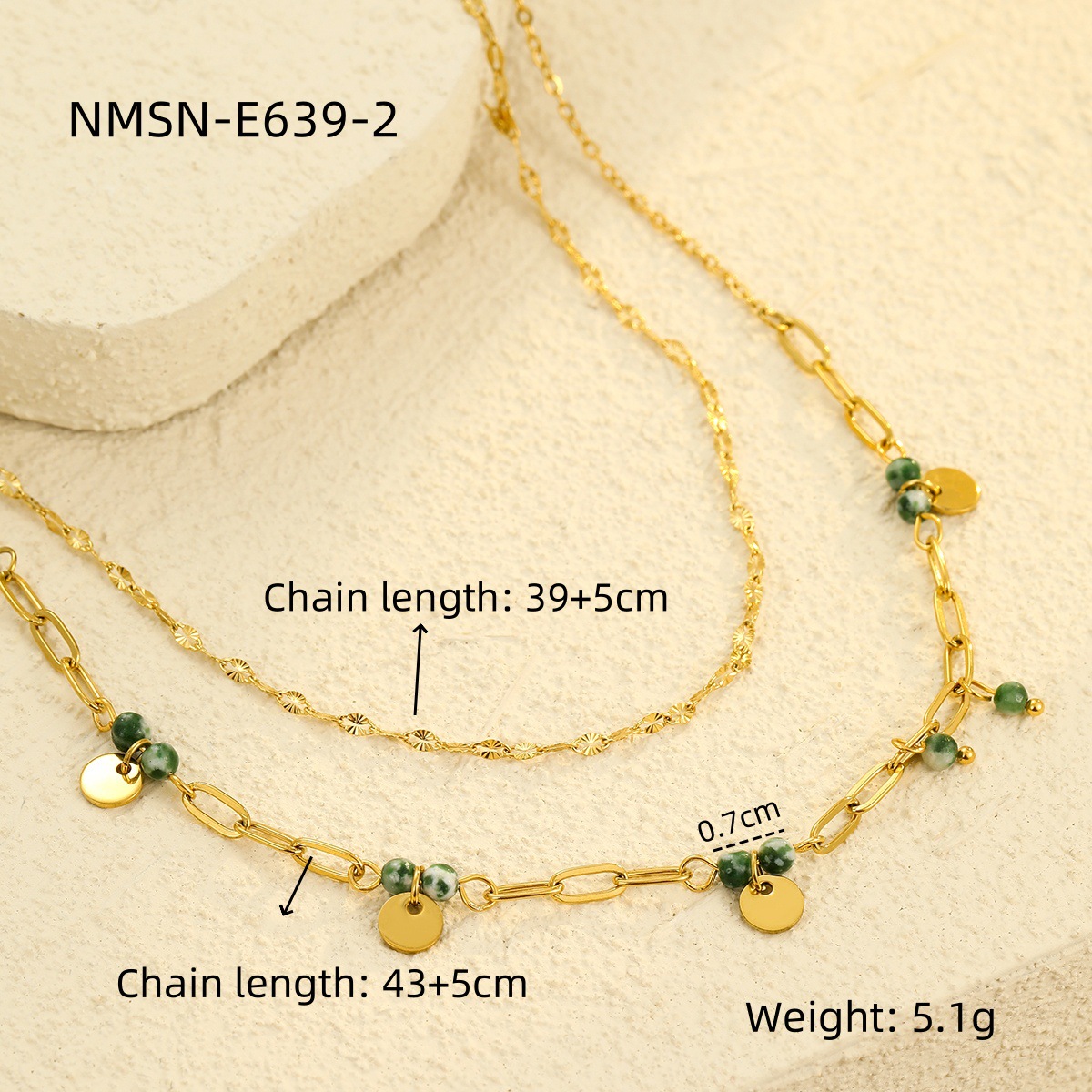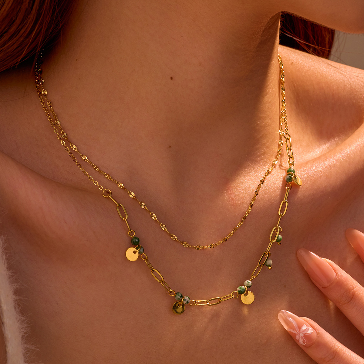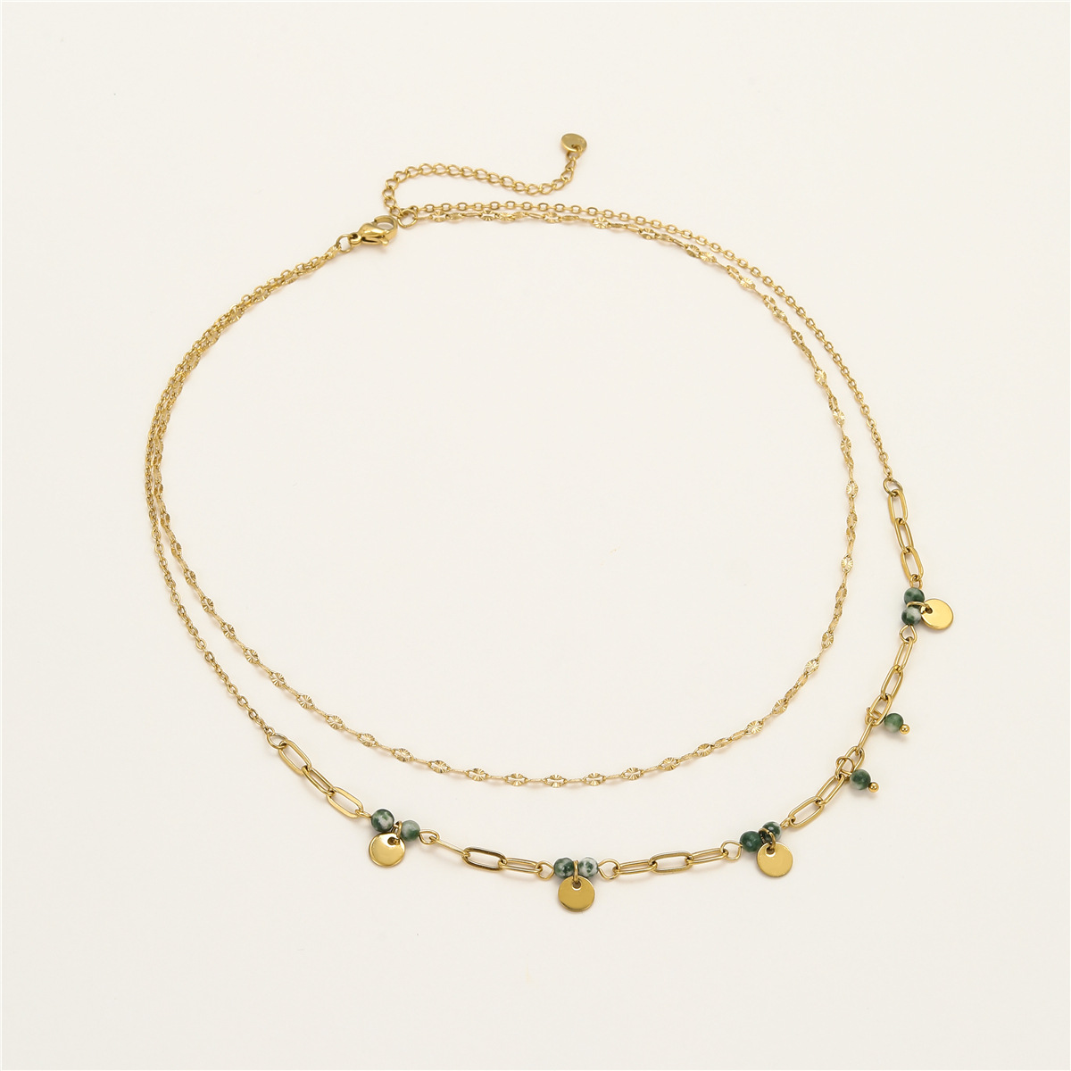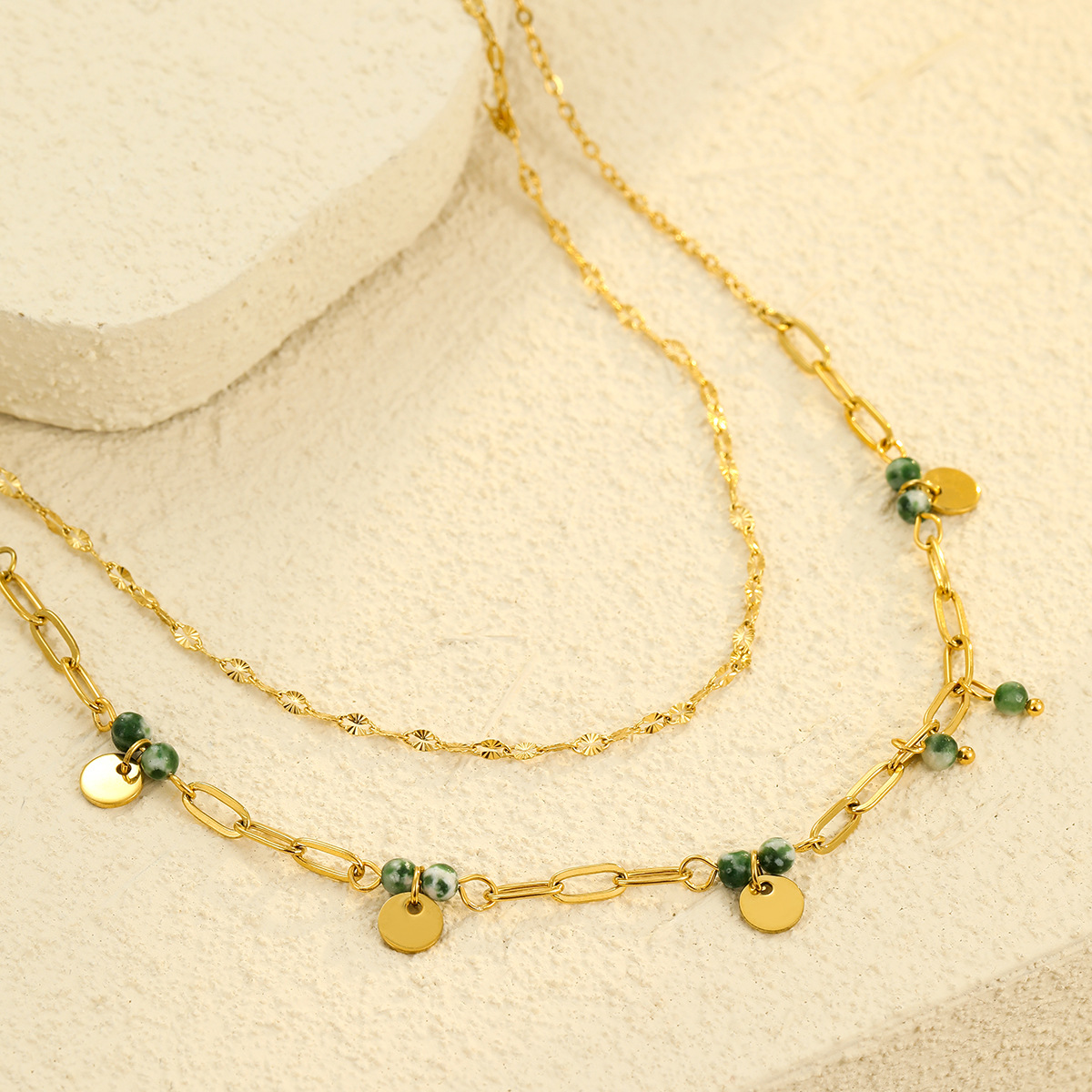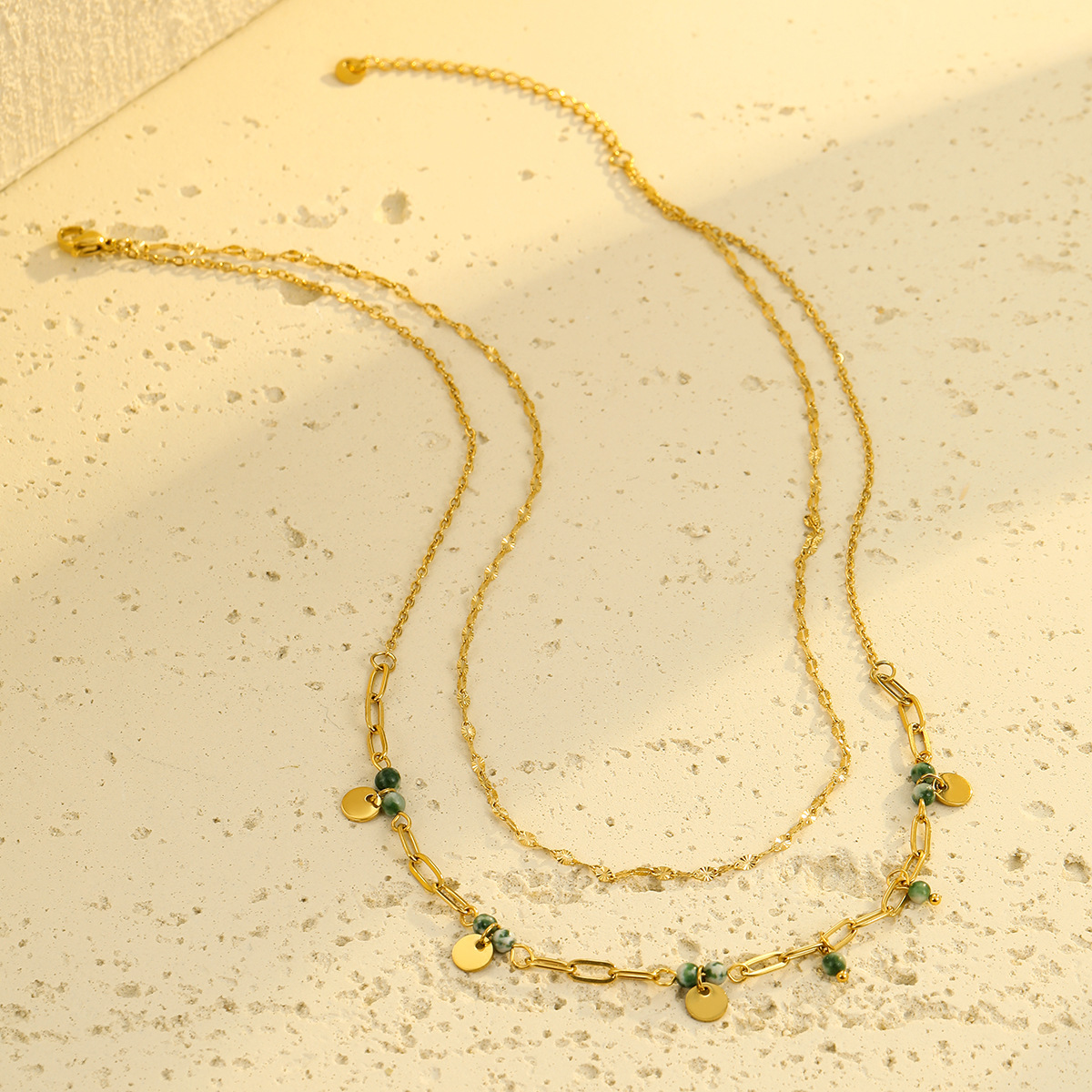 Collar de acero inoxidable de la joyería, acero inoxidable 304, con Piedra natural, 18K chapado en oro, Doble capa & para mujer, Vendido por UD