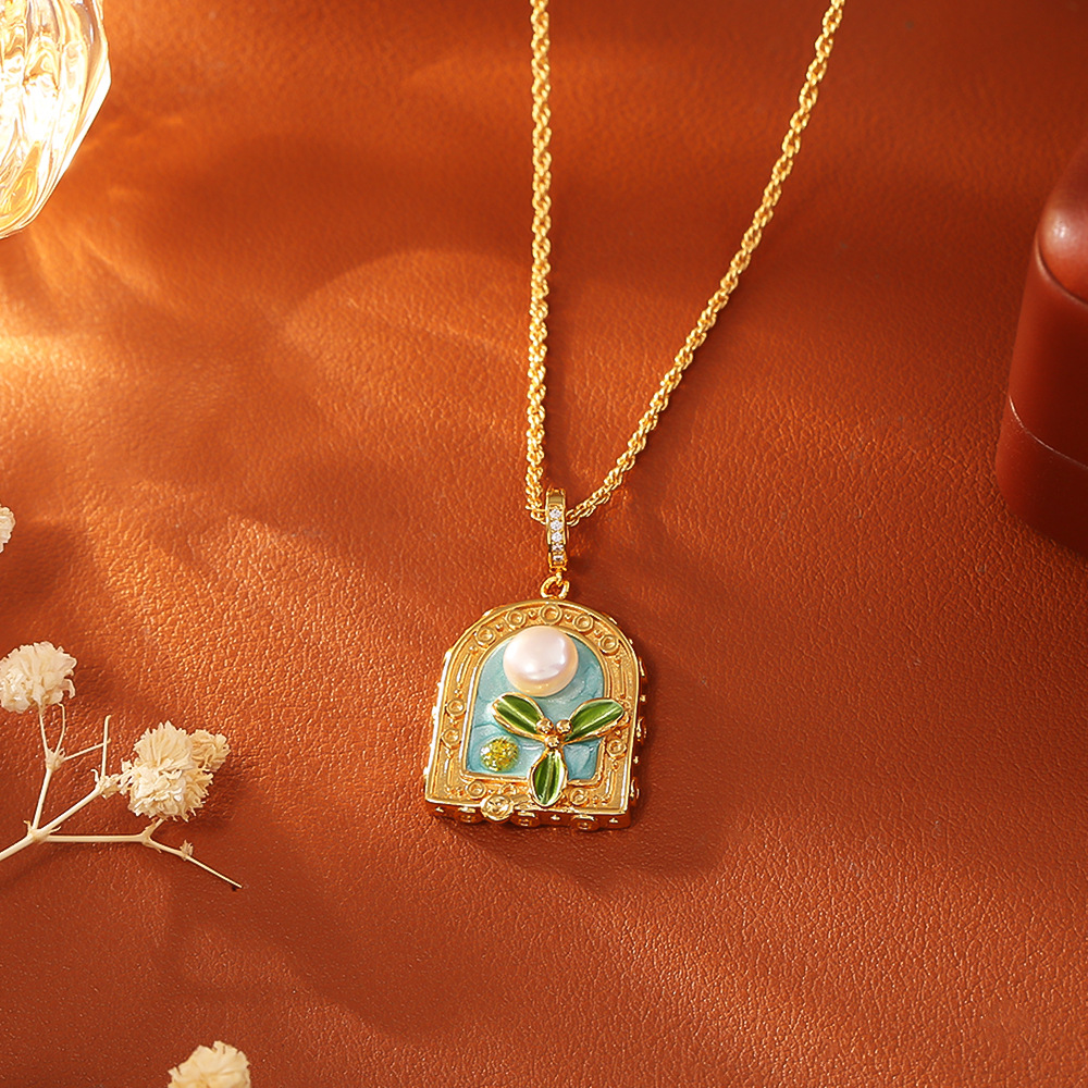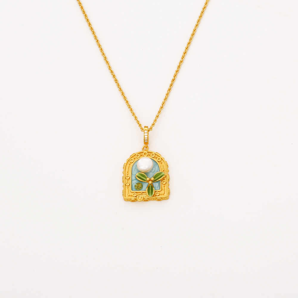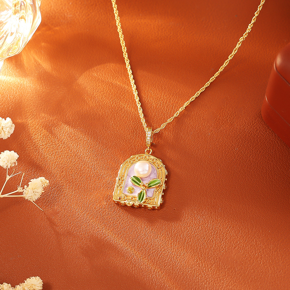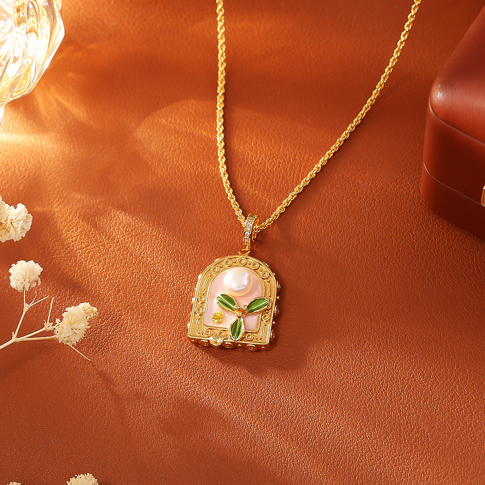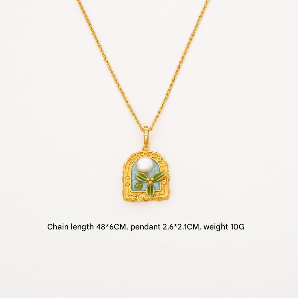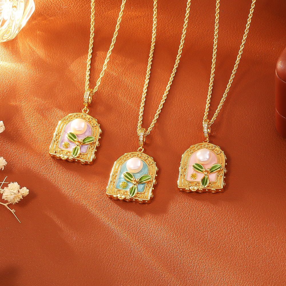 Collar en Cadena de Metal con Perlas de Freshwater, con Perlas cultivadas de agua dulce, con 5.5cm extender cadena, 18K chapado en oro, diferentes estilos para la opción & micro arcilla de zirconia cúbica & para mujer & esmalte, The pendant is 3.5cm long and 1.6cm wide, longitud 46 cm, Vendido por UD