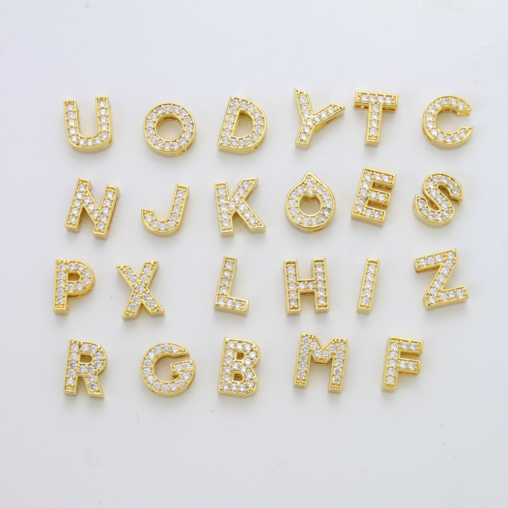 Cúbicos Circonia Colgante Latón Micro pavimenta, metal, Carta del alfabeto, chapado, Bricolaje & micro arcilla de zirconia cúbica, dorado, libre de níquel, plomo & cadmio, 13.70x11.60x4.70mm, Vendido por UD
