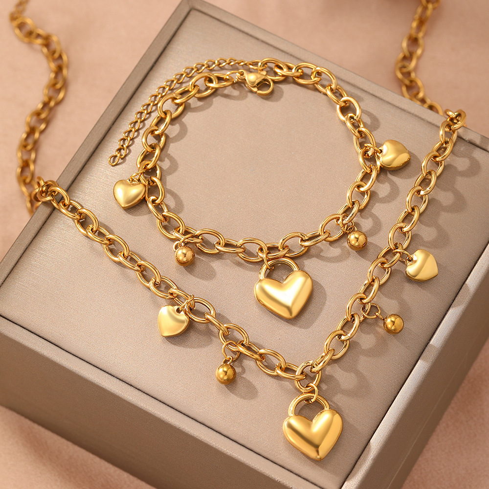 Conjuntos de joyería de acero inoxidable, pulsera & collar, acero inoxidable 304, chapado, 2 piezas & para mujer, más colores para la opción, Vendido por Set