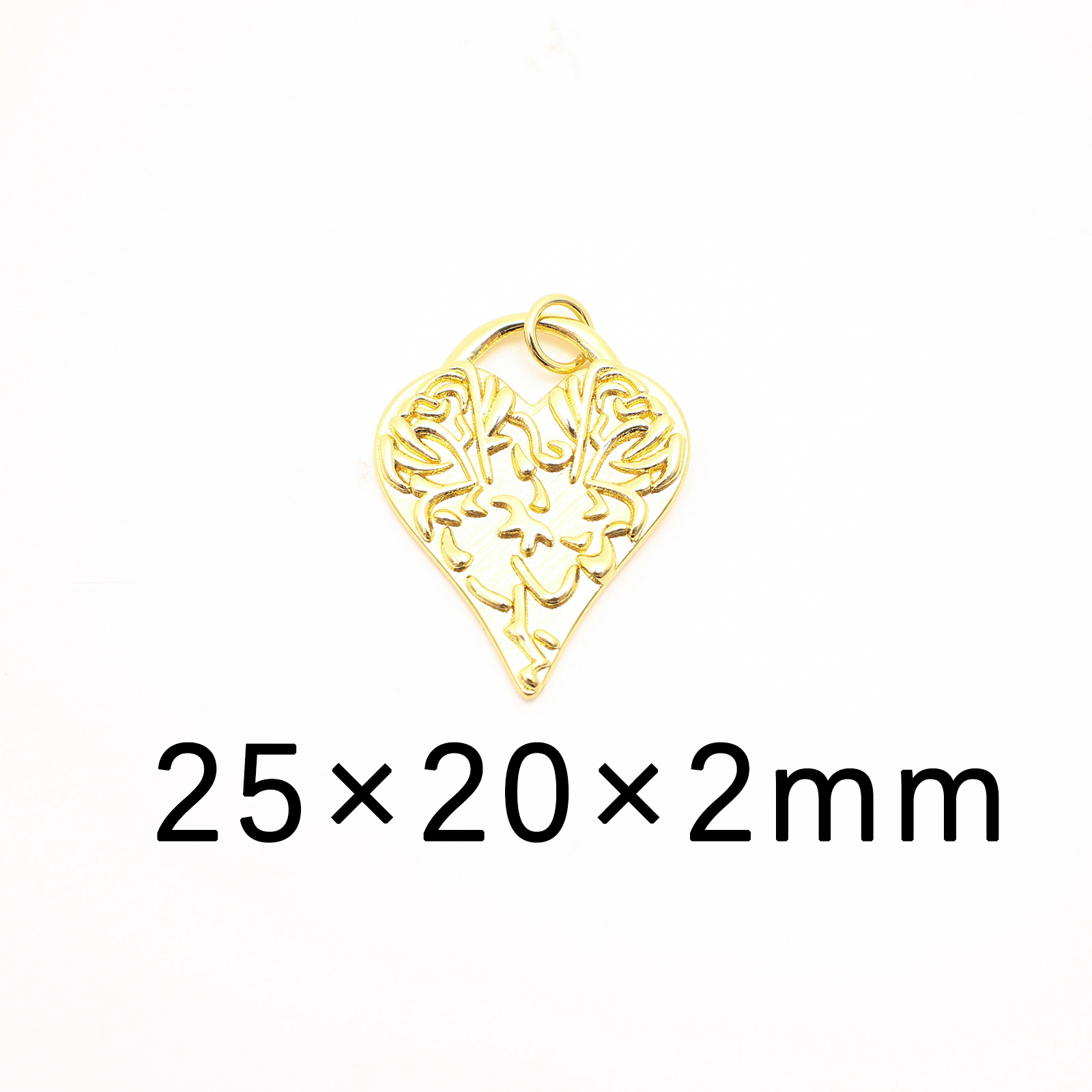 Colgantes hueco de latón, metal, Corazón, Bricolaje, dorado, 25x20x2mm, Vendido por UD