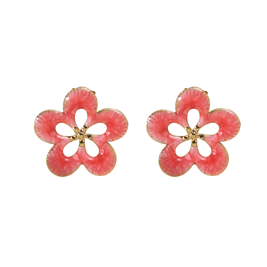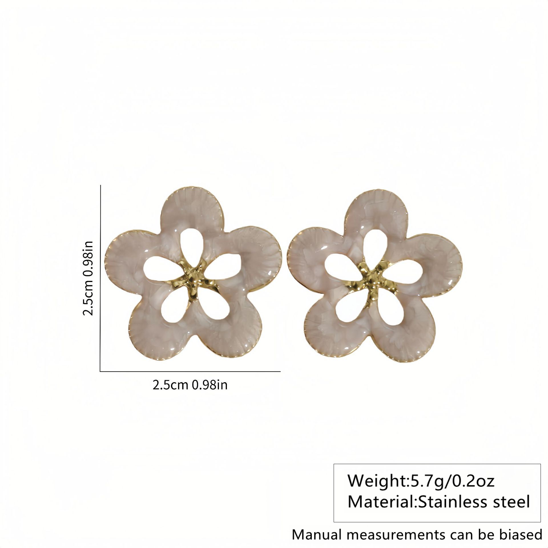 Pendientes de Acero Inoxidable, acero inoxidable 304, Flor, chapado en color dorado, para mujer & esmalte & hueco, más colores para la opción, 25x25mm, Vendido por Par