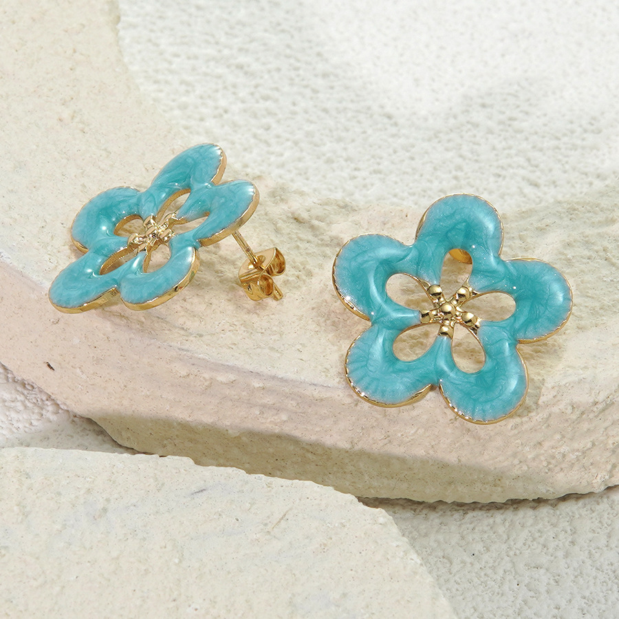 Pendientes de Acero Inoxidable, acero inoxidable 304, Flor, chapado, Joyería & esmalte, dos diferentes colores, Vendido por Par