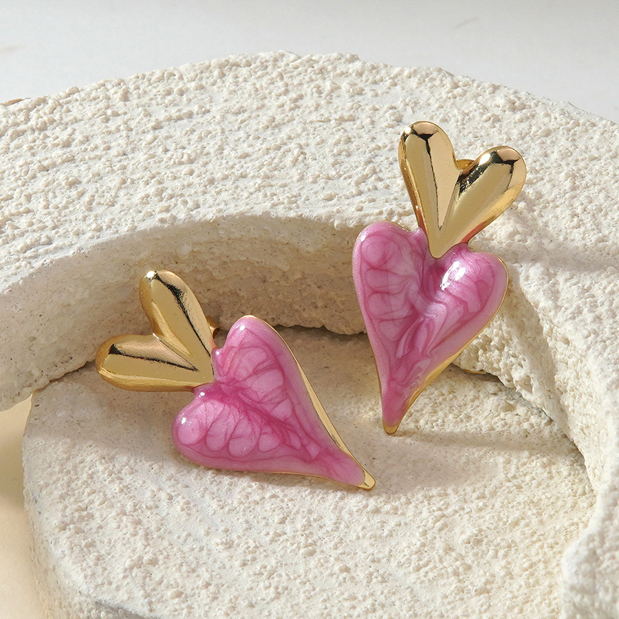 Pendientes de Acero Inoxidable, acero inoxidable 304, Corazón, chapado en color dorado, para mujer & esmalte, más colores para la opción, 17.20x34.30mm, Vendido por Par