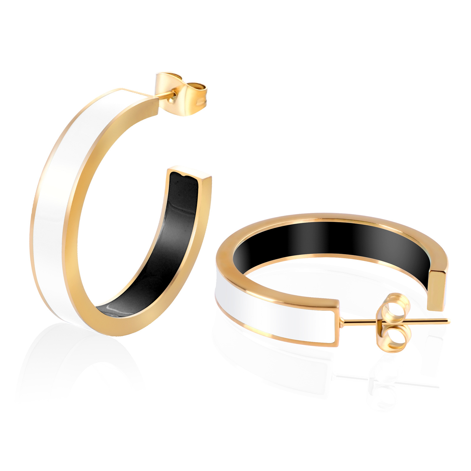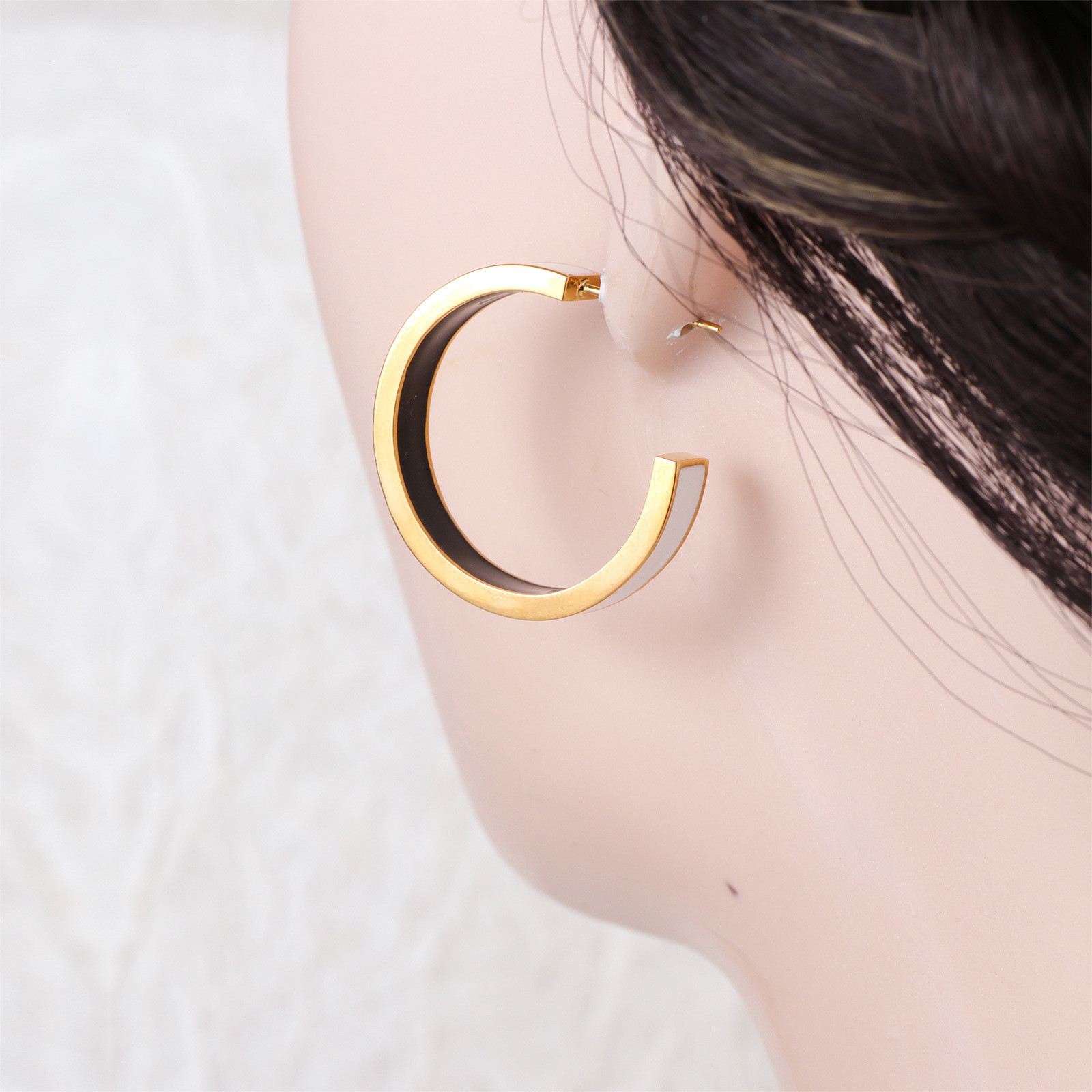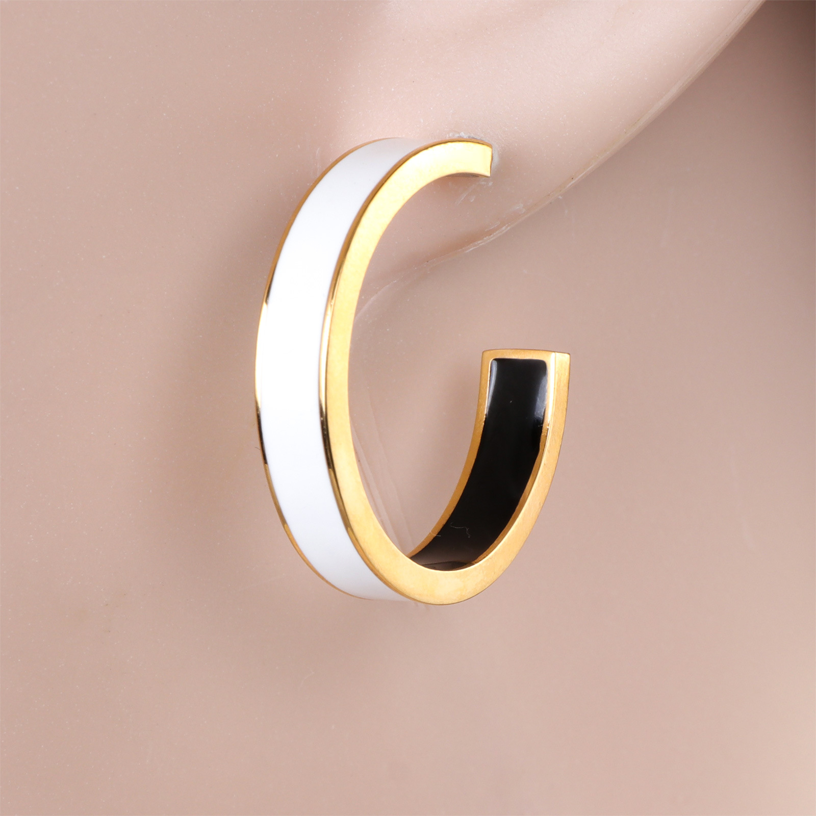 Pendientes de Acero Inoxidable, chapado en color dorado, para mujer & esmalte, en blanco y negro, 5x28mm, Vendido por Par