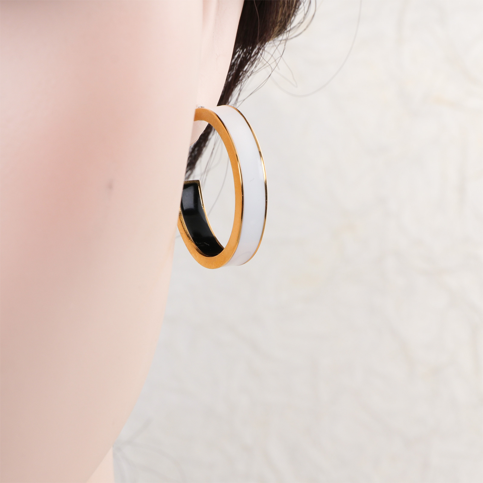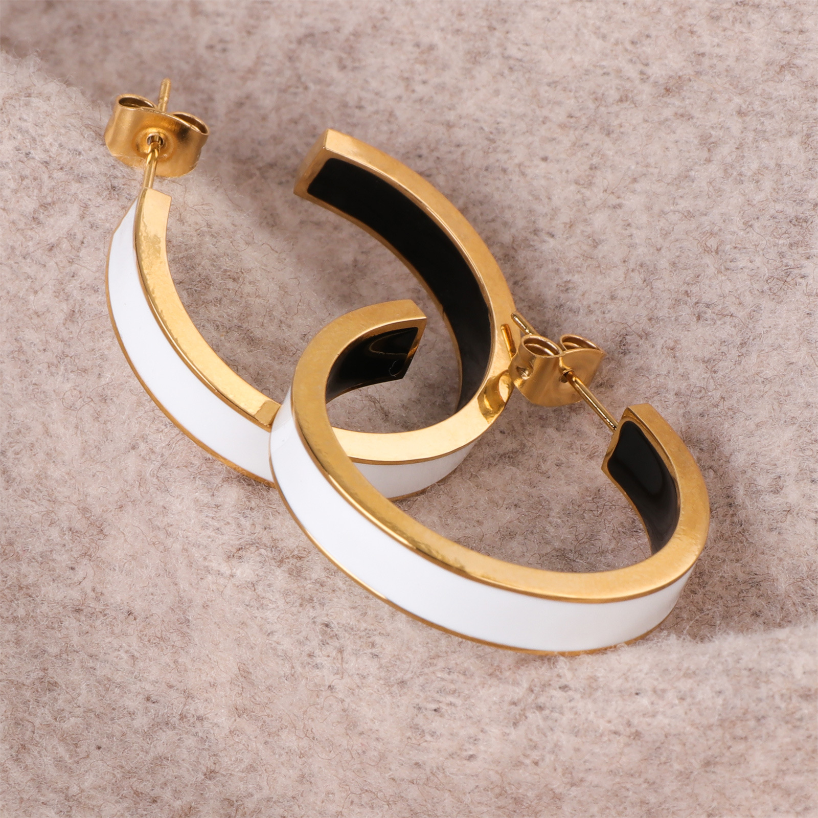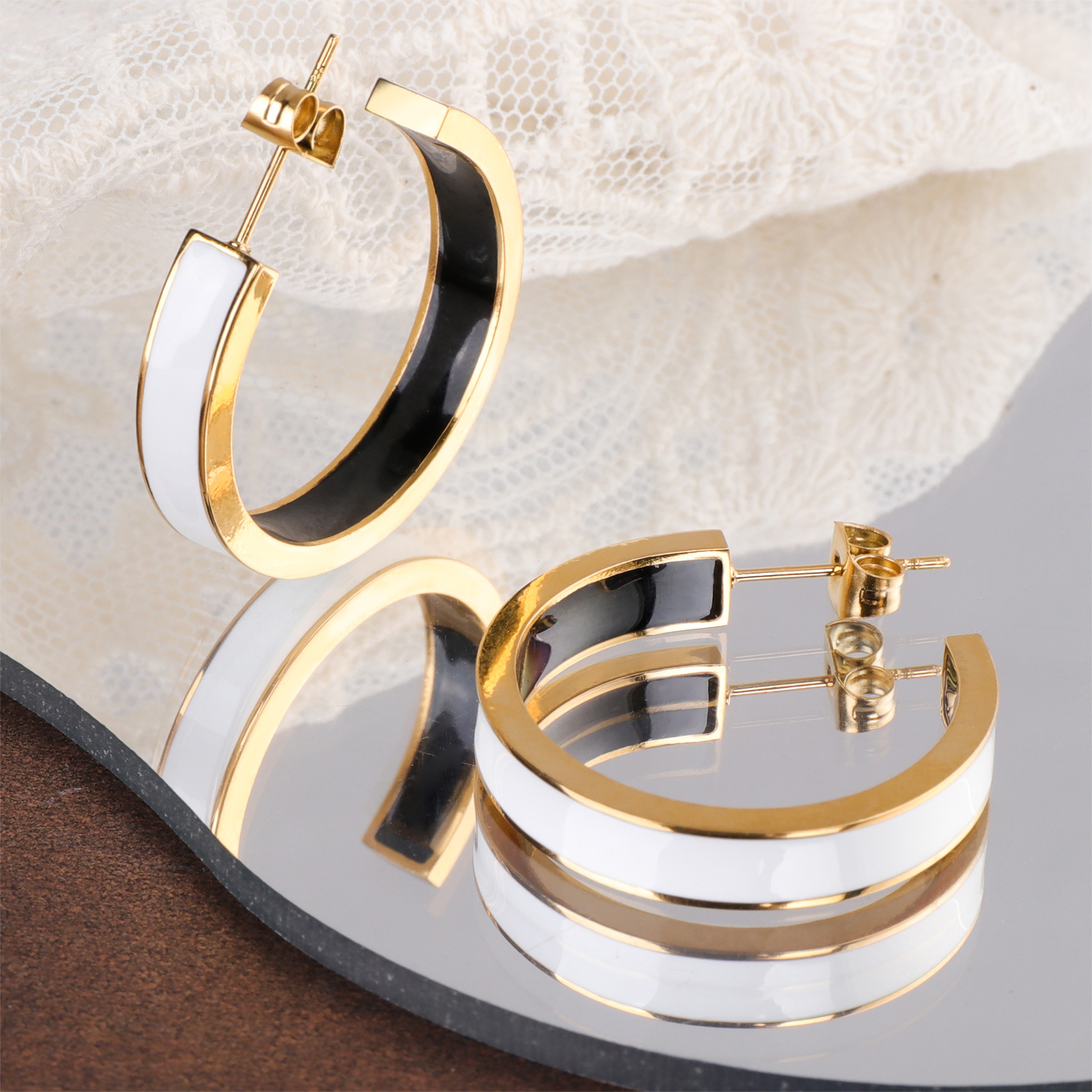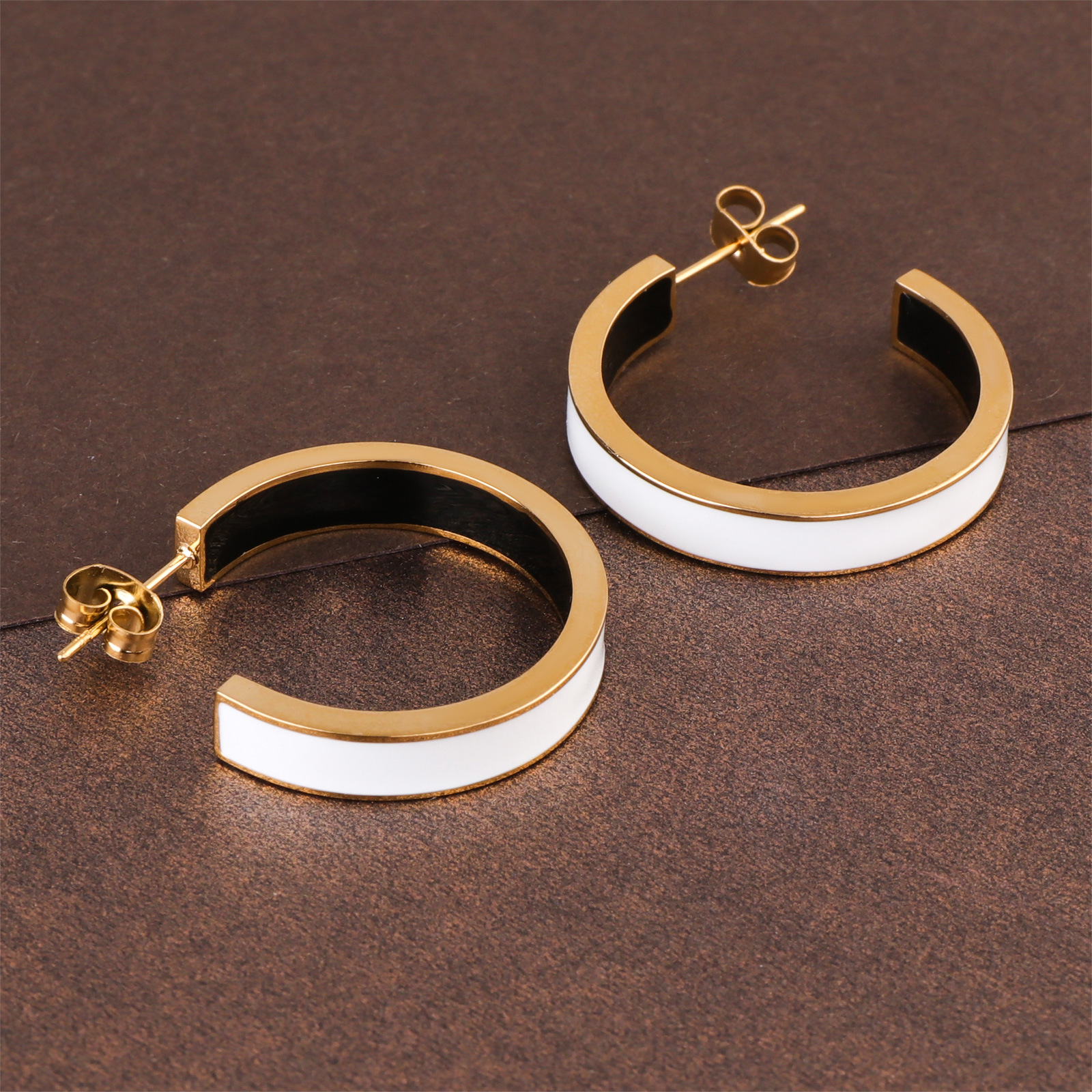 Pendientes de Acero Inoxidable, chapado en color dorado, para mujer & esmalte, en blanco y negro, 5x28mm, Vendido por Par