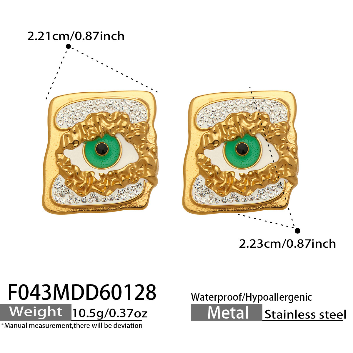 Pendientes de Acero Inoxidable, con Arcilla analiar de diamantes de imitación AB, chapado en color dorado, para mujer, 22.10x22.30mm, Vendido por Par