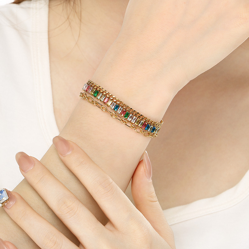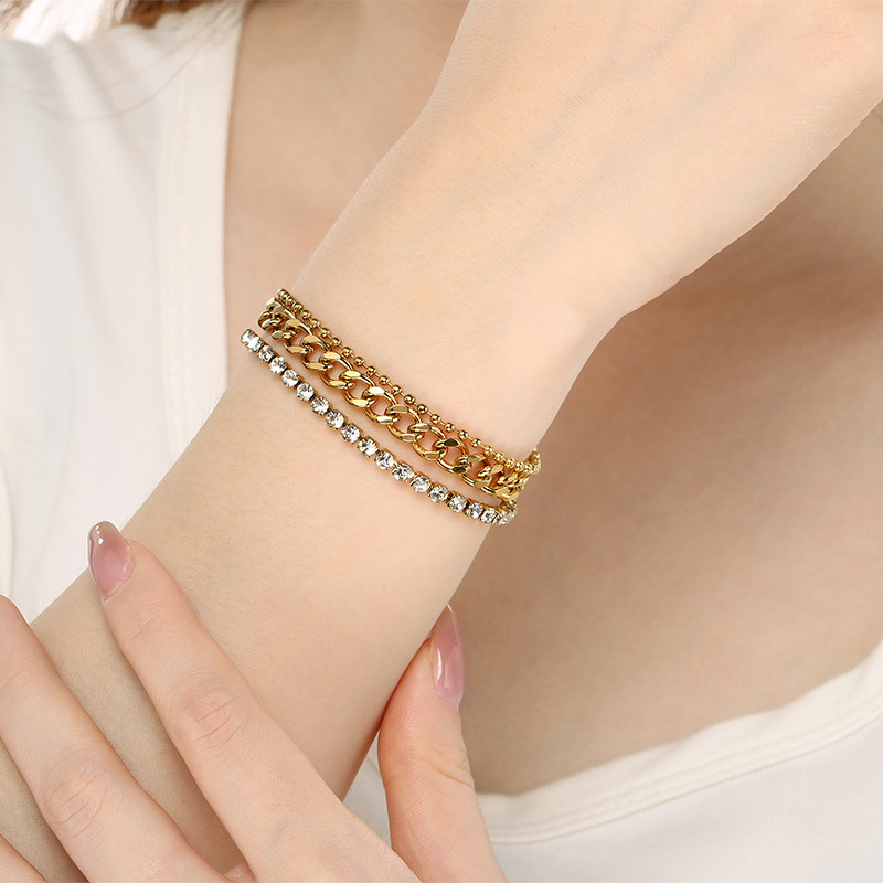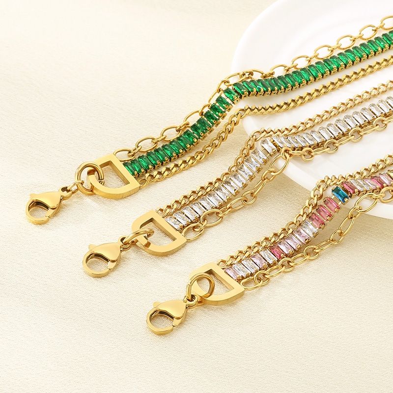 Pulsera de Acero Inoxidable, acero inoxidable 304, chapado en color dorado, Joyería & micro arcilla de zirconia cúbica, más colores para la opción, Vendido por UD