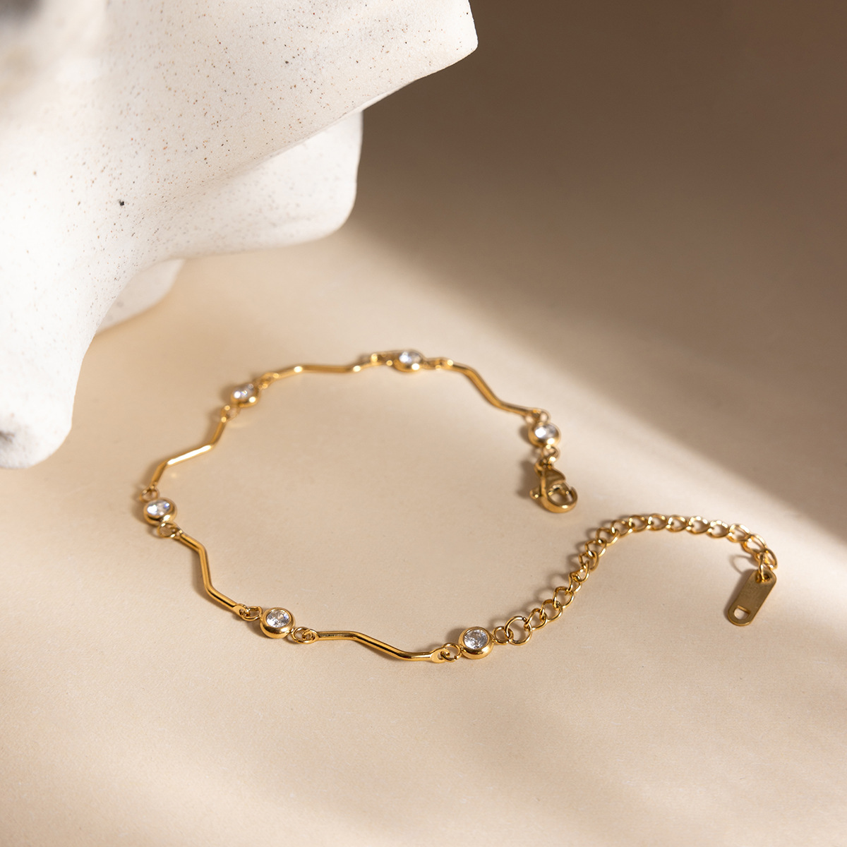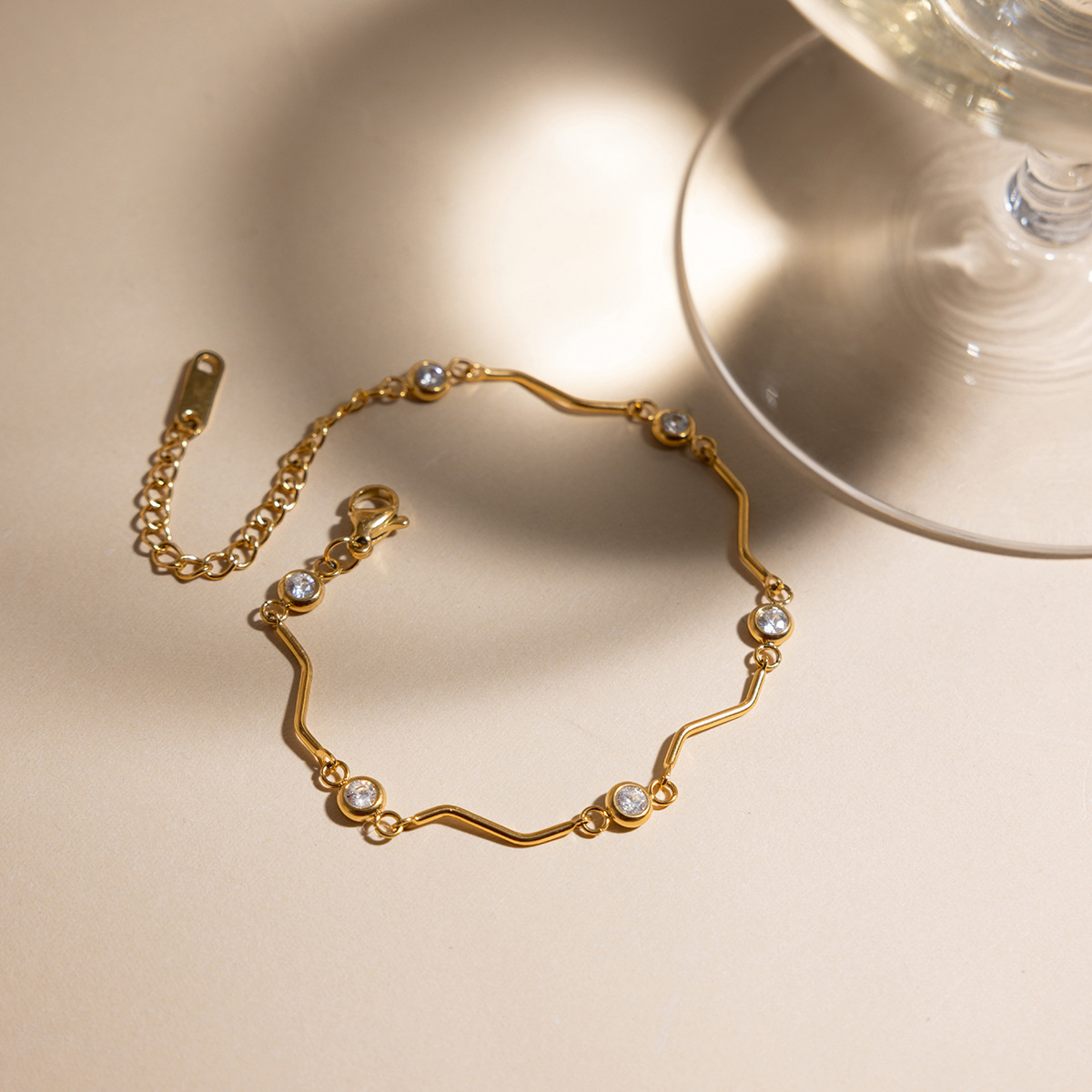 Pulsera de Acero Inoxidable, acero inoxidable 304, con cúbica circonia, chapado, Joyería & diferentes estilos para la opción & para mujer, dorado, Vendido por UD
