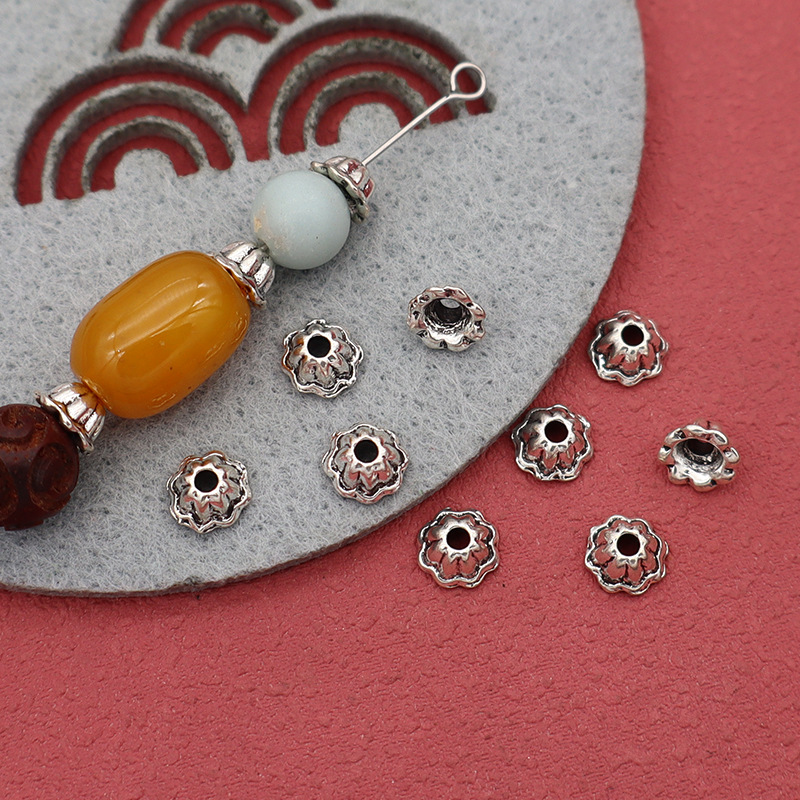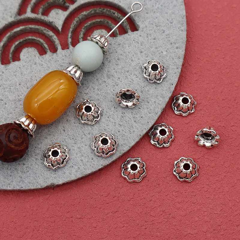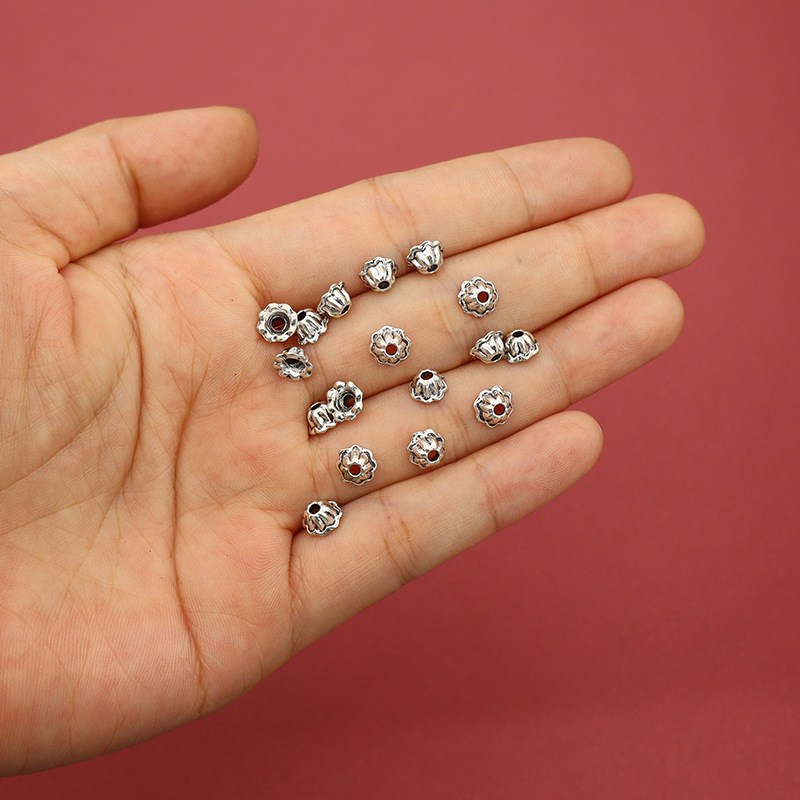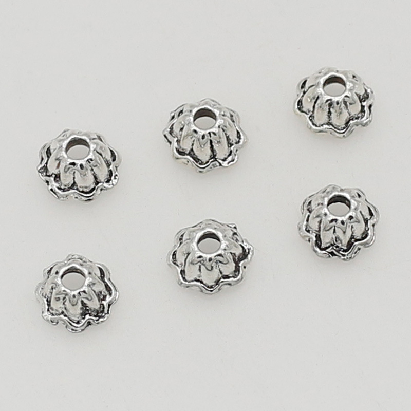 Terminal de Aleación de Zinc, Flor, chapado en color de plata, Bricolaje, 7x3.50mm, 100PCs/Bolsa, Vendido por Bolsa