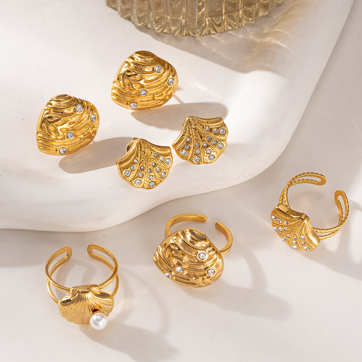 Zirconia cúbicos Juegos de joyería de acero inoxidable, Partículas de acero, con Perlas plásticas, chapado en color dorado, micro arcilla de zirconia cúbica, más colores para la opción, Vendido por UD