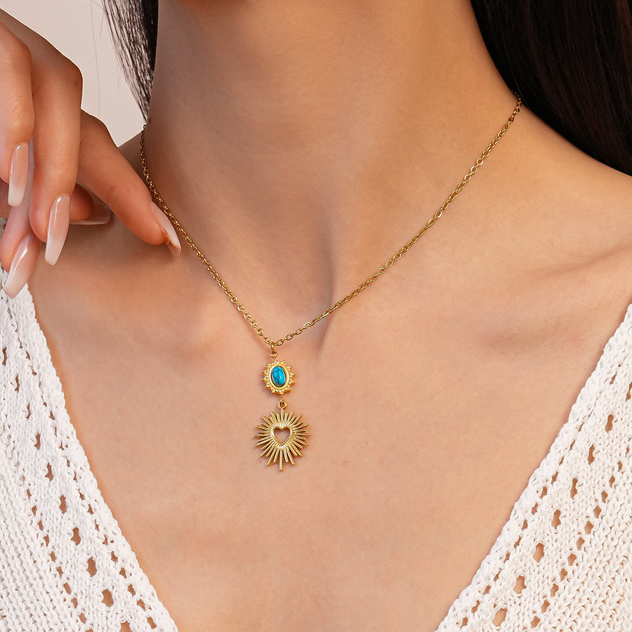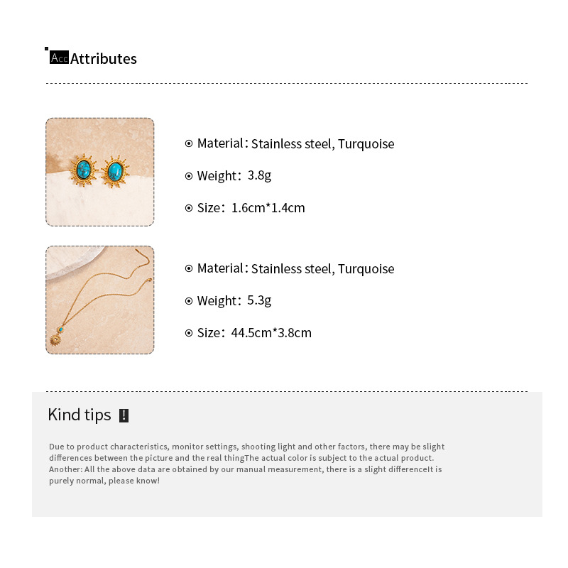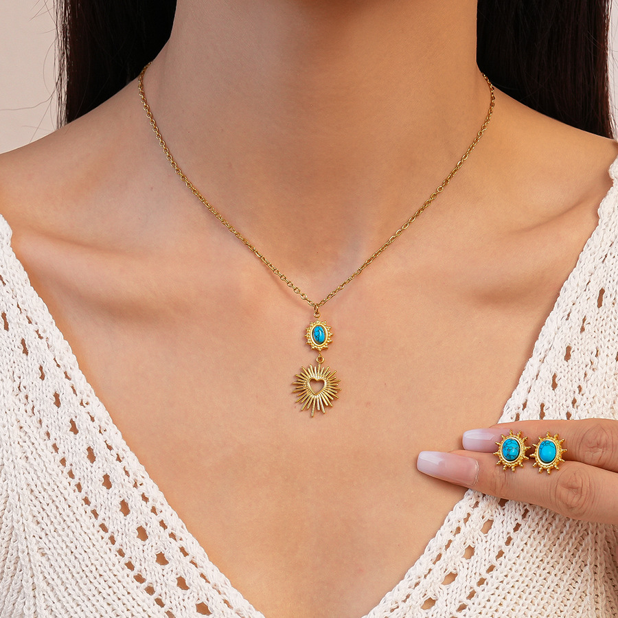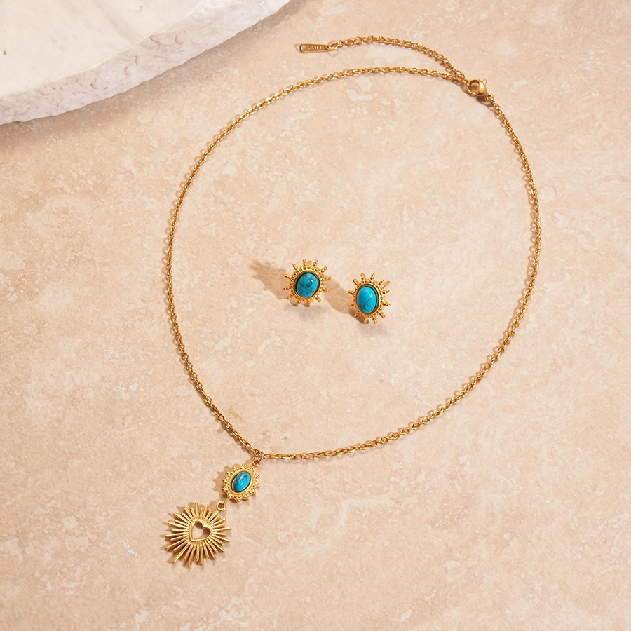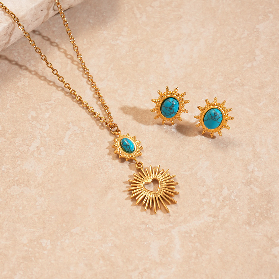 acero inoxidable 304 Conjunto de joya, Pendiente de stud & collar, con turquesa, chapado en color dorado, Joyería, más colores para la opción, Vendido por Set