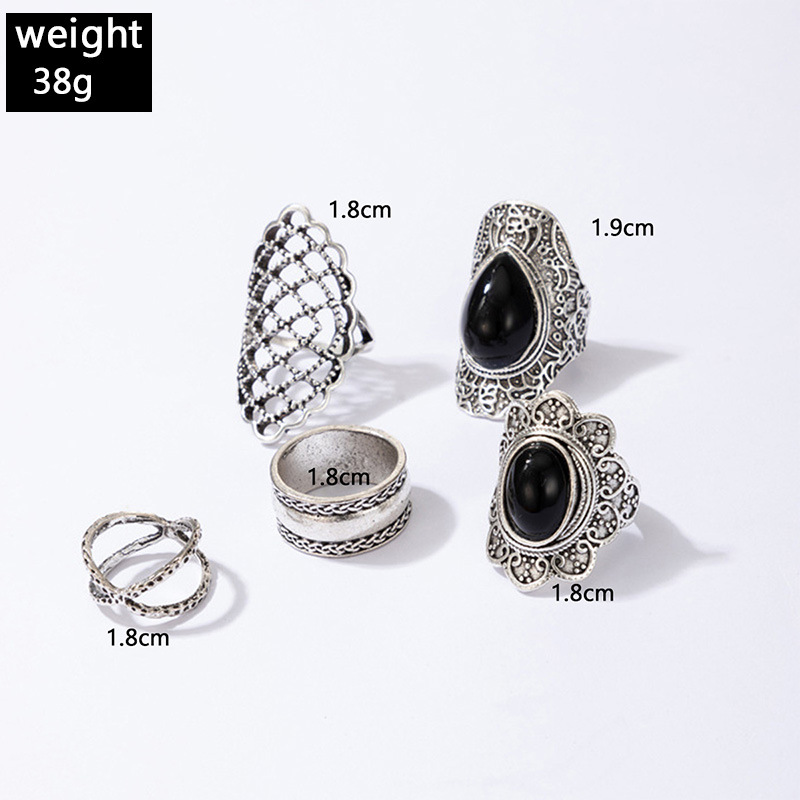 aleación de zinc Anillo Set, chapado en color de plata, 5 piezas & elástico & para mujer & con diamantes de imitación, tamaño:10, Vendido por Set