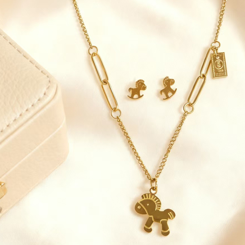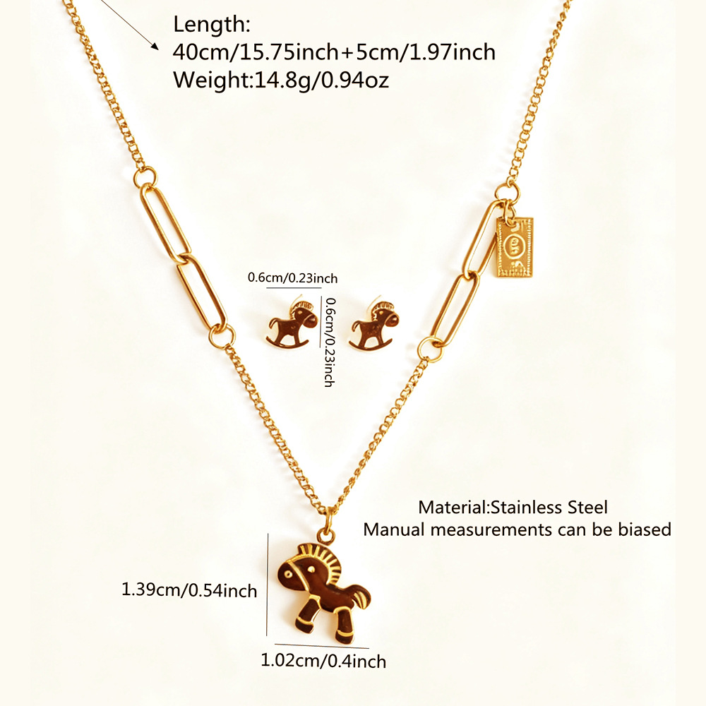 304 Stainless Steel Korusetti, Hevonen, kullan väri kullattu, muoti korut & eri tyylejä valinta & naiselle, Myymät PC