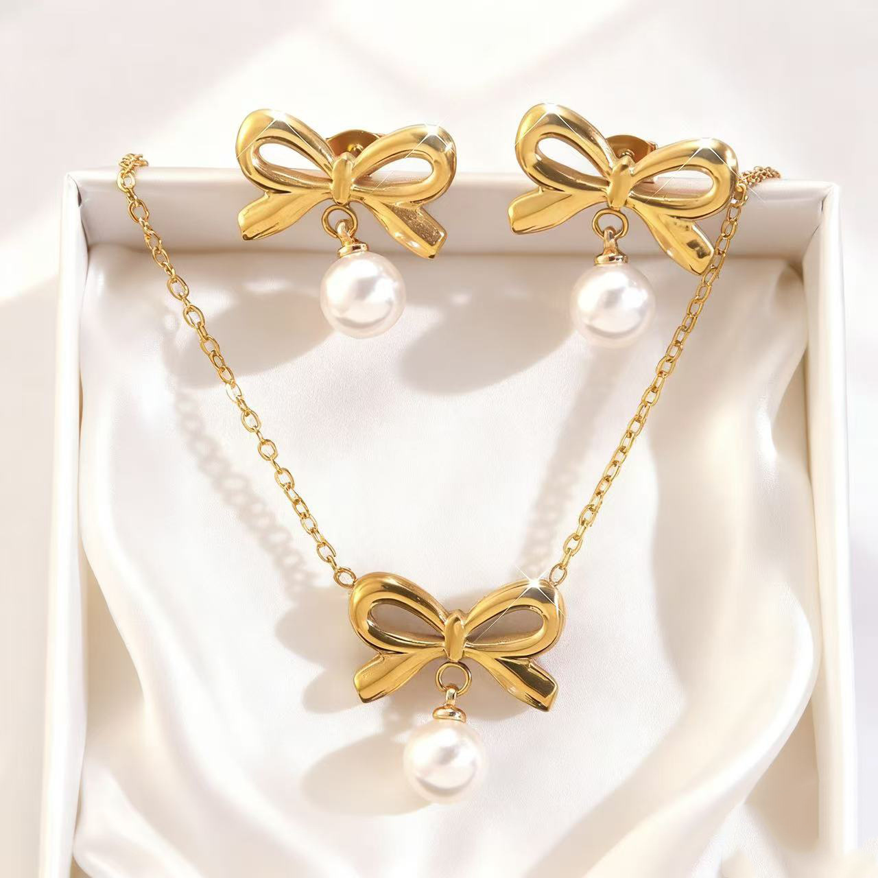 304 Stainless Steel Korusetti, kanssa Muovi Pearl, Bowknot, kullan väri kullattu, eri tyylejä valinta & naiselle, Myymät PC