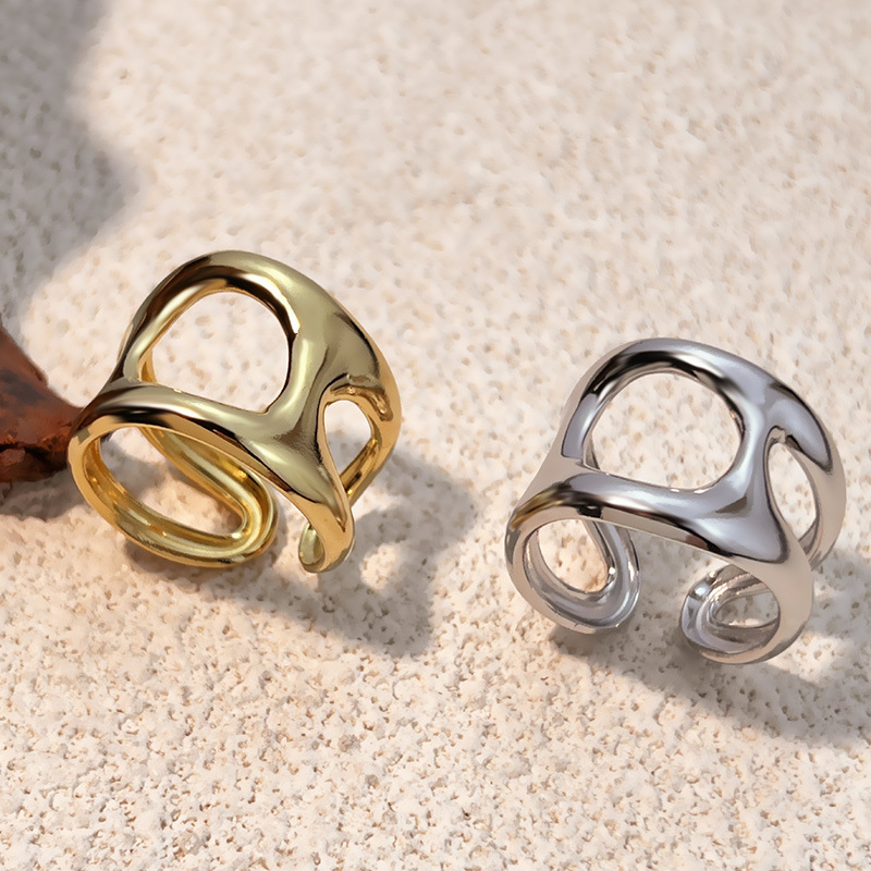 304 Stainless Steel Ranneke sormen sormus, muoti korut & naiselle, kultainen, Inner diameter: 18mm, Myymät PC