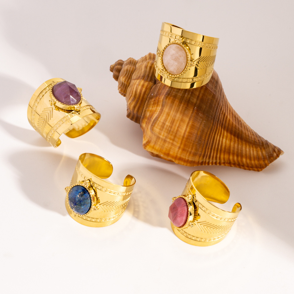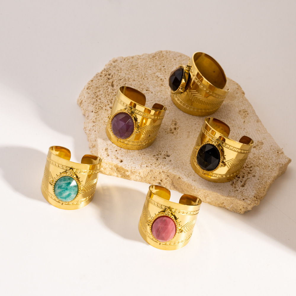 304 Stainless Steel Ranneke sormen sormus, kanssa Jalokivi, kullan väri kullattu, eri materiaaleja valinta & naiselle, 10PC/laukku, Myymät laukku