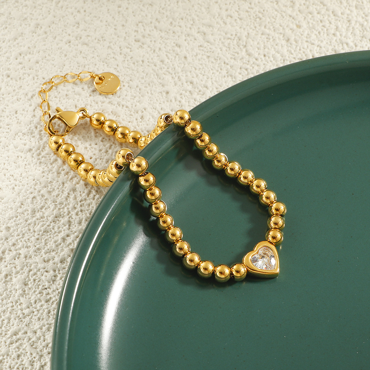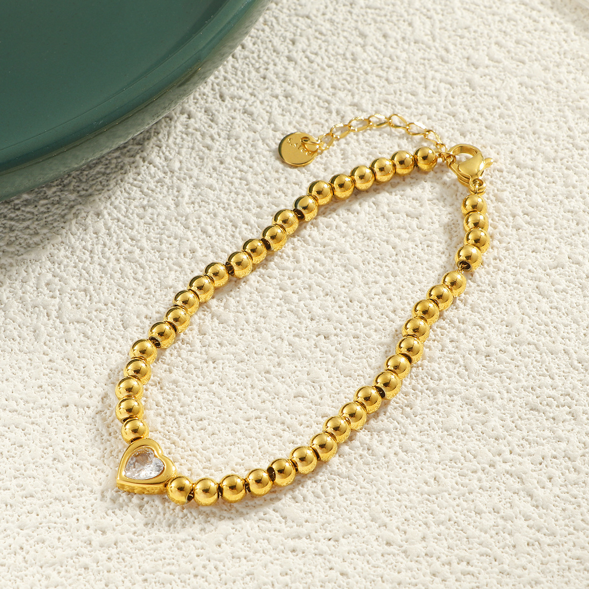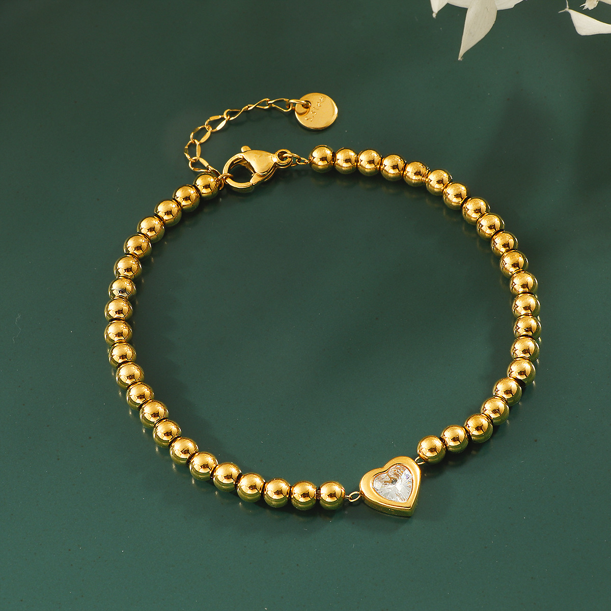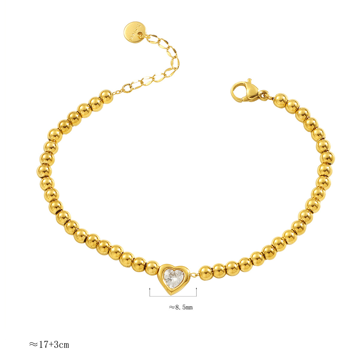 304 Stainless Steel Rannerengas, kanssa 3inch extender ketju, Sydän, kullan väri kullattu, Micro Pave kuutiometriä zirkonia & naiselle, Pituus 17 cm, Myymät PC