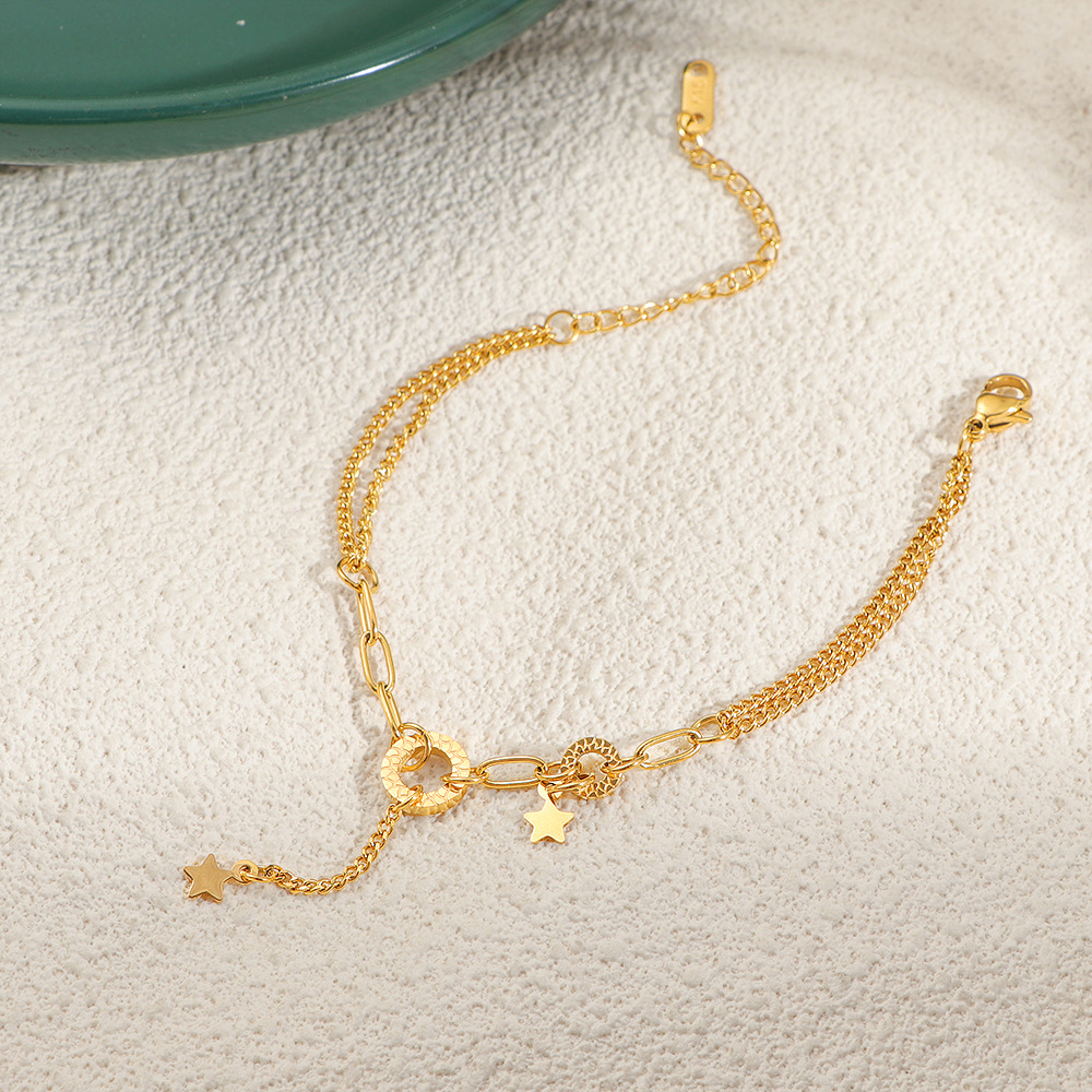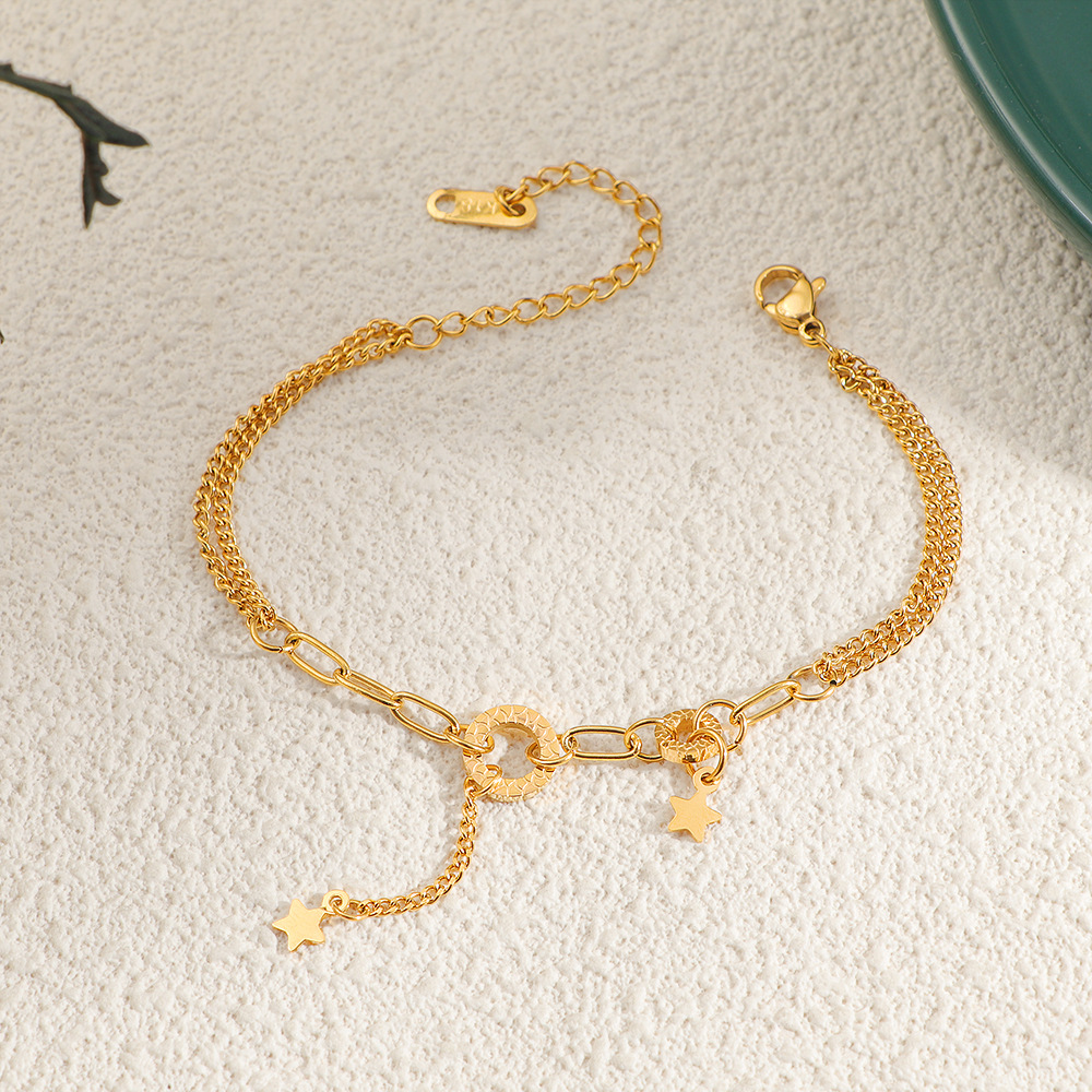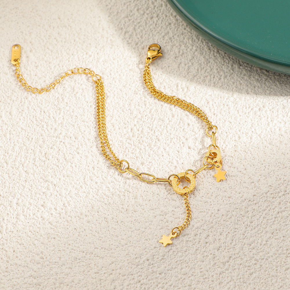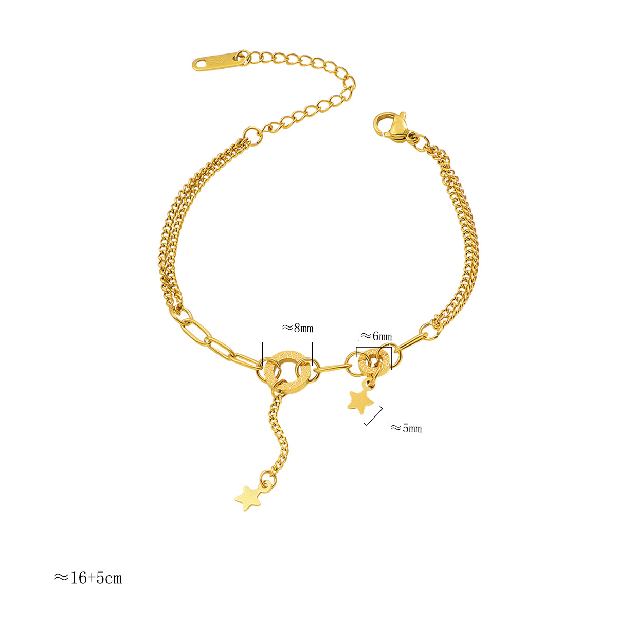 304 Stainless Steel Rannerengas, kanssa 5cm extender ketju, Tähti, kullan väri kullattu, muoti korut & naiselle, Pituus N. 16 cm, Myymät PC