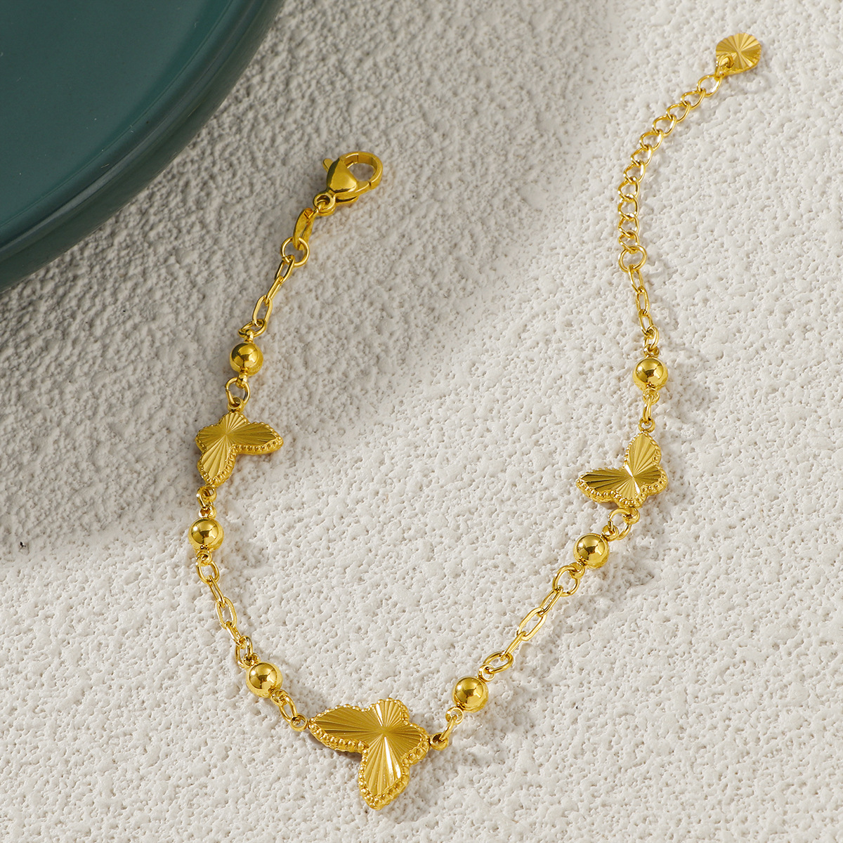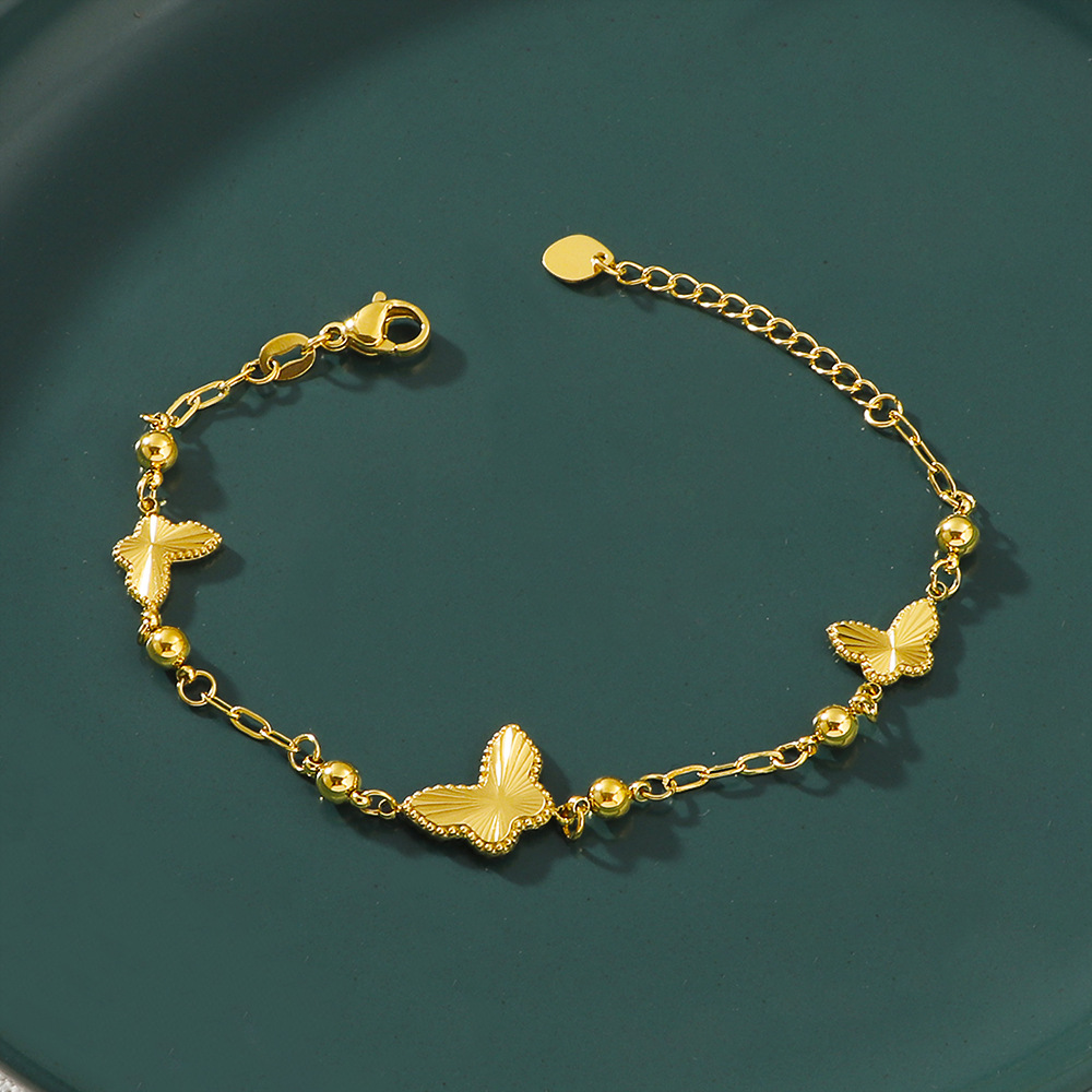 304 Stainless Steel Rannerengas, kanssa 5cm extender ketju, Perhonen, kullan väri kullattu, muoti korut & naiselle, Pituus N. 16 cm, Myymät PC