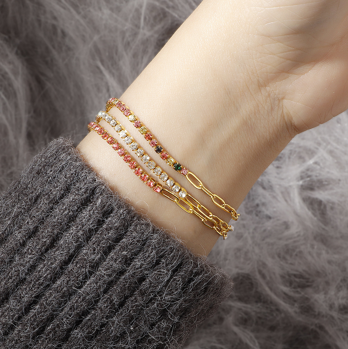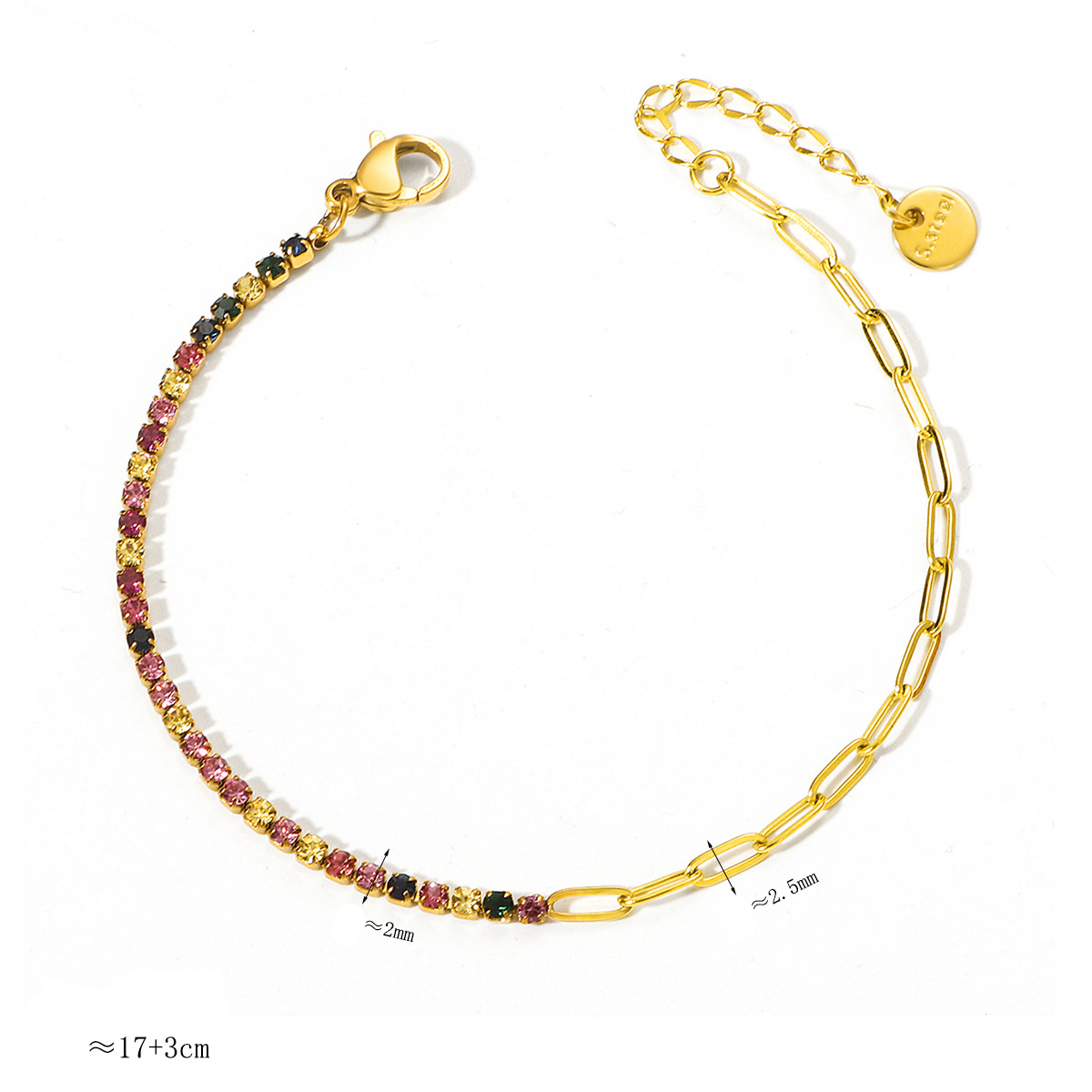304 Stainless Steel Rannerengas, kanssa 3cm extender ketju, kullan väri kullattu, Micro Pave kuutiometriä zirkonia & naiselle, enemmän värejä valinta, Pituus N. 17 cm, Myymät PC