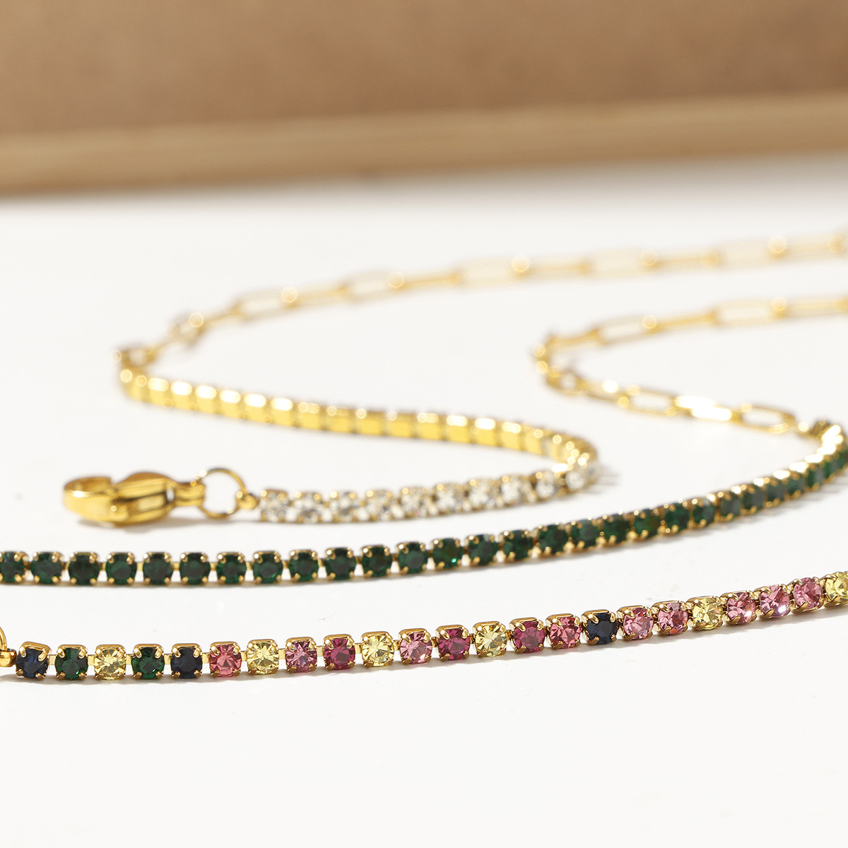 Stainless Steel korut rannerengas, 304 Stainless Steel, kanssa Luonnonkivi, kanssa 4cm extender ketju, päällystetty, Kaksinkertainen kerros & eri materiaaleja valinta & eri tyylejä valinta & naiselle, kultainen, Pituus 16 cm, Myymät PC
