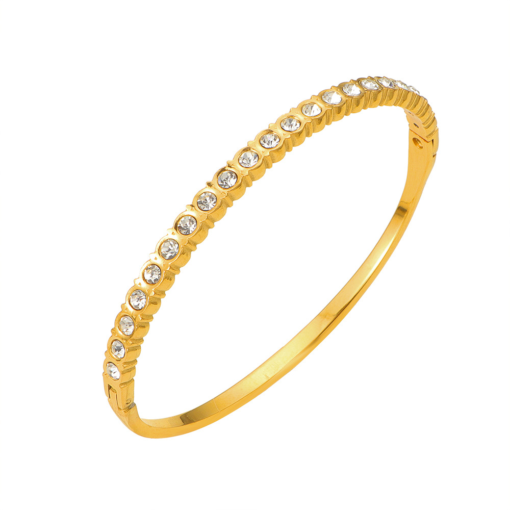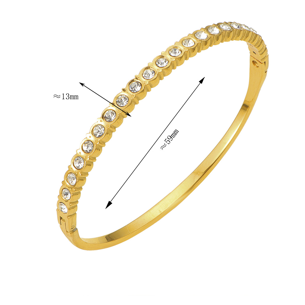 304 Stainless Steel Rannerengas, kullan väri kullattu, naiselle & tekojalokivi, Sisäläpimitta:N. 59mm, Myymät PC