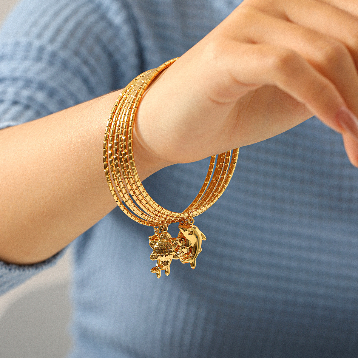 304 Stainless Steel Rannerengas, kullan väri kullattu, kolme kappaletta & eri tyylejä valinta & naiselle, Sisäläpimitta:N. 65.5mm, Myymät set