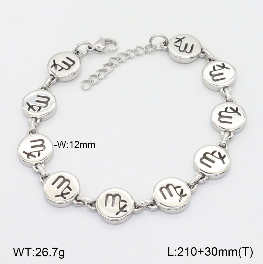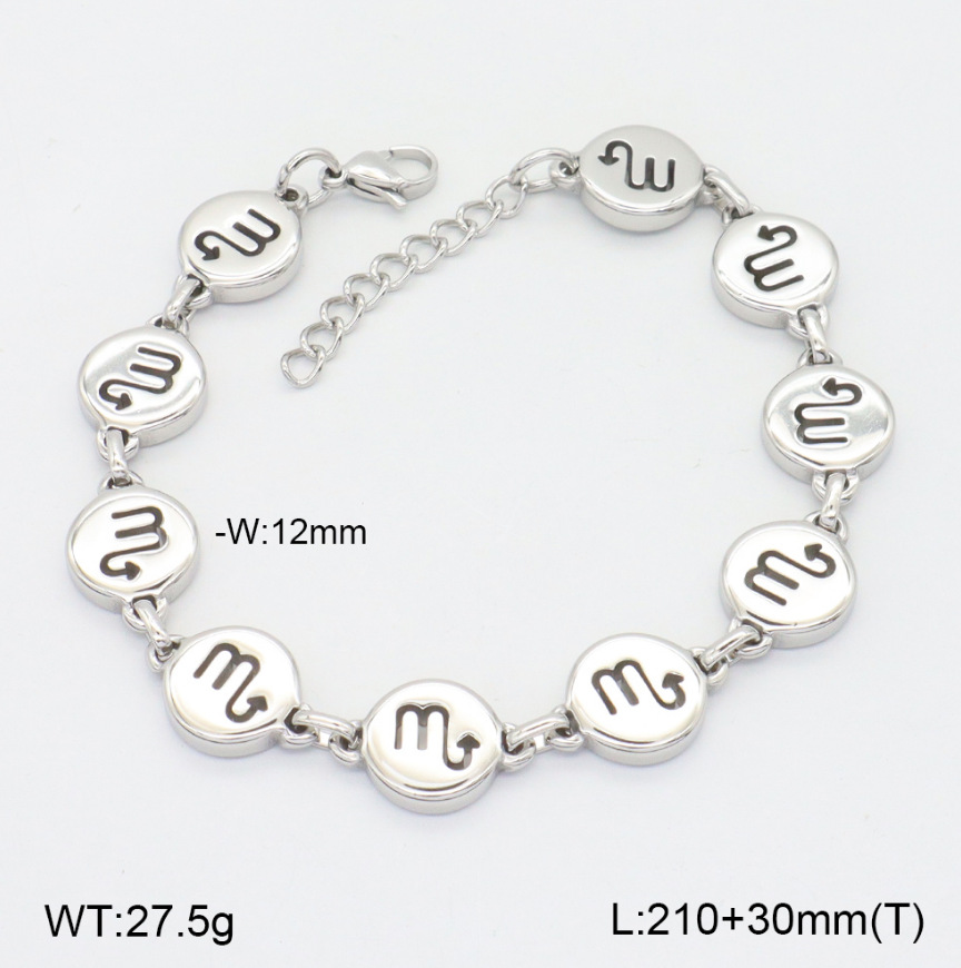 304 Stainless Steel Rannerengas, kanssa 3cm extender ketju, 12 Zodiacin merkit, kiiltävä, muoti korut & Erilaisia ​​malleja valinta & naiselle, alkuperäinen väri, Pituus N. 21 cm, Myymät PC