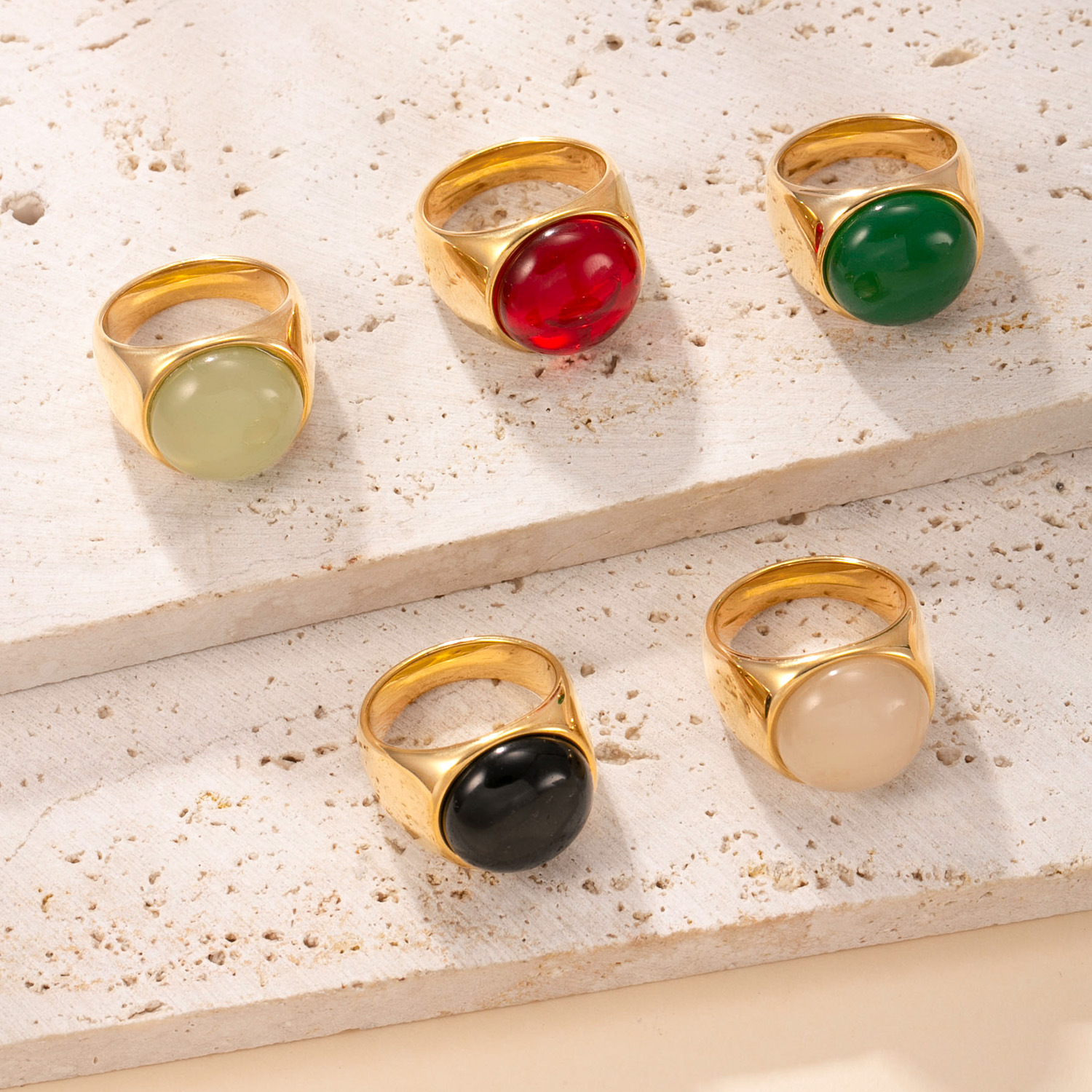 304 Stainless Steel Sormen sormus, kanssa Luonnonkivi, kullan väri kullattu, muoti korut & Unisex & erikokoisia valinnalle, enemmän värejä valinta, Myymät PC