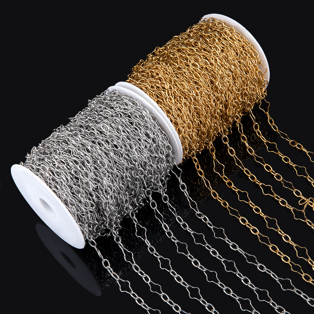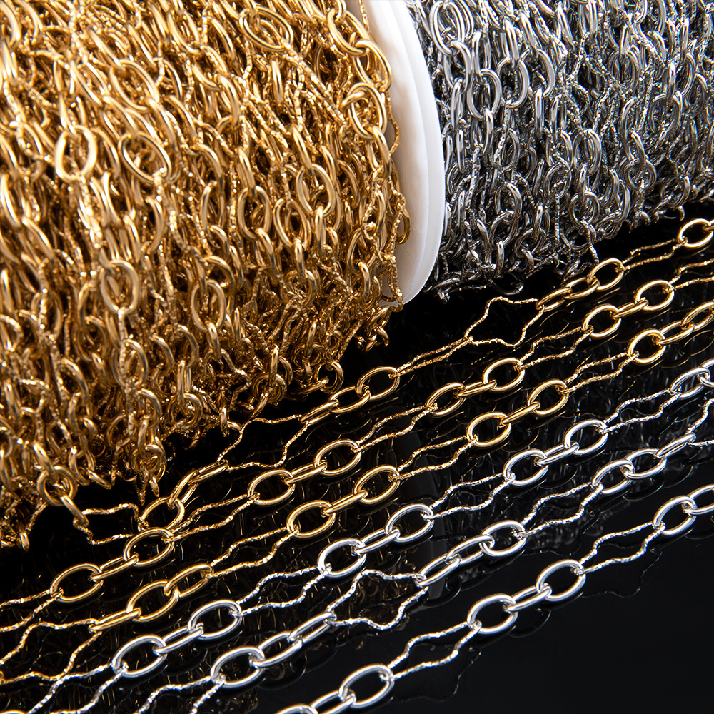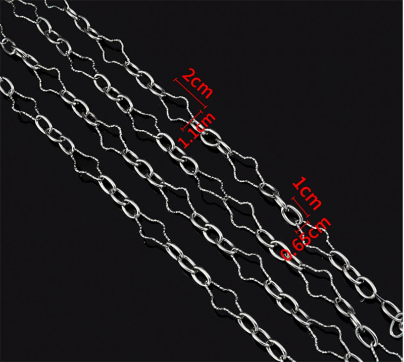 1:Oval flower partition frame-gold2:Oval flower partition frame-steel color3:Oval mesh chain4:Double link chain about:4-6mm5:Long elliptic chain about:4-6mm6:Butterfly chain about:4-6mm7:Geometric border chain chain8:Embossed geometric chain about:4-6mm9:Hollow cross chain about:4-6mm10:Long partition ring chain about:4-6mm11:Babysbreath chain about:4-6mm12:Twist-link chain about:4-6mm