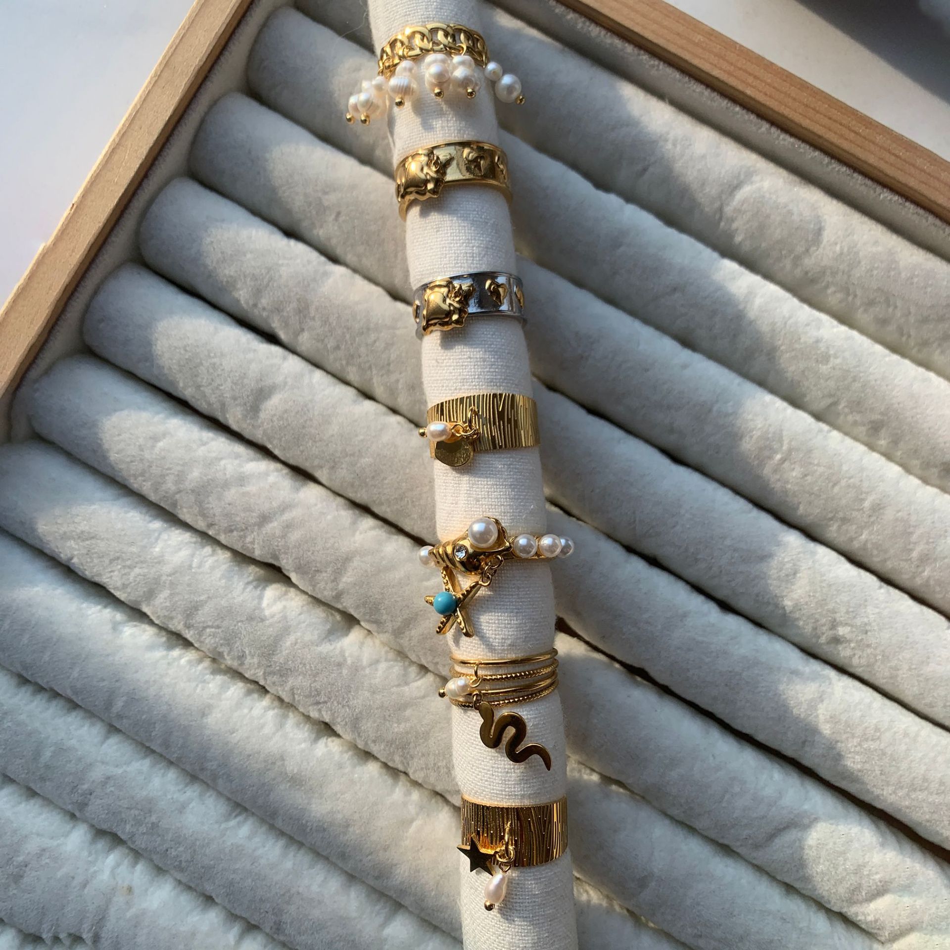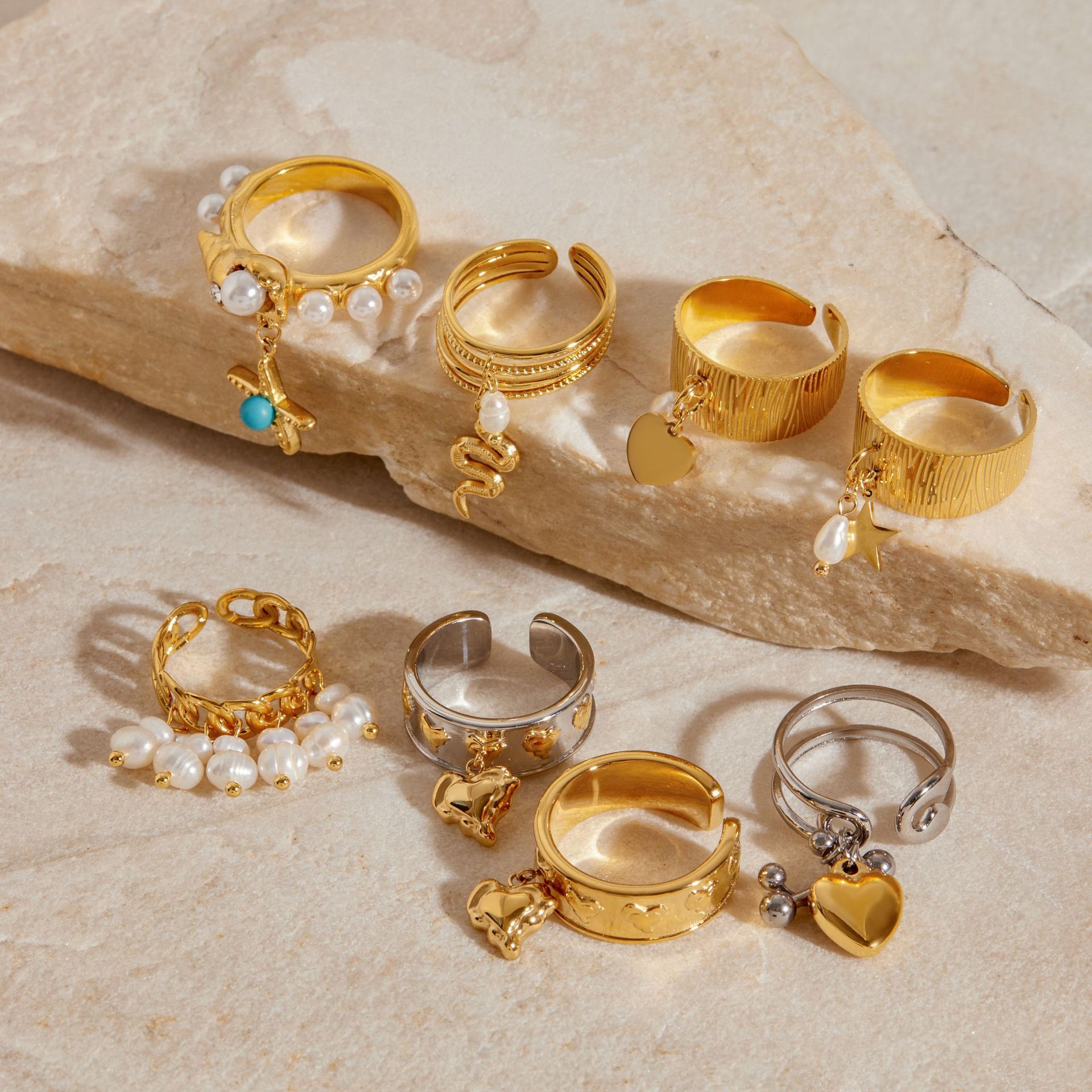 Ruostumaton teräs sormen sormus, 304 Stainless Steel, kanssa Muovi Pearl, päällystetty, muoti korut & naiselle, kultainen, Myymät PC